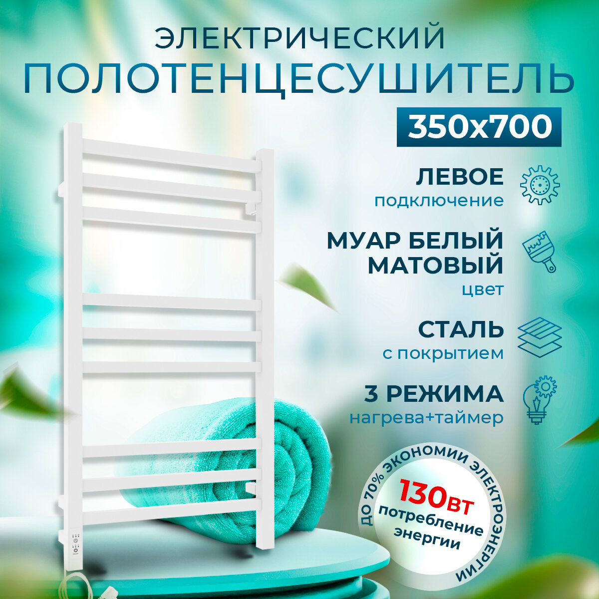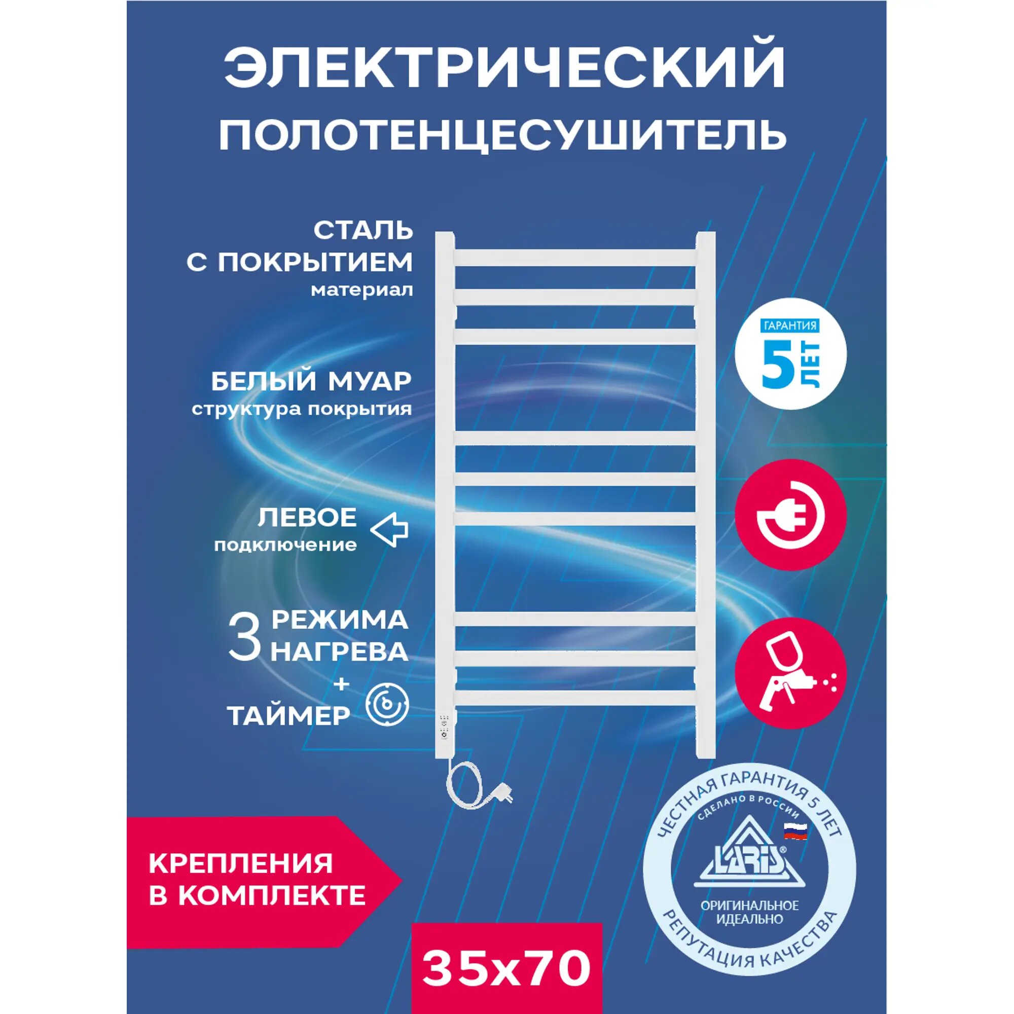 Полотенцесушитель электрический Laris Астор ЧК9 Л 350x700 мм 135 Вт с терморегулятором лесенка цвет белый