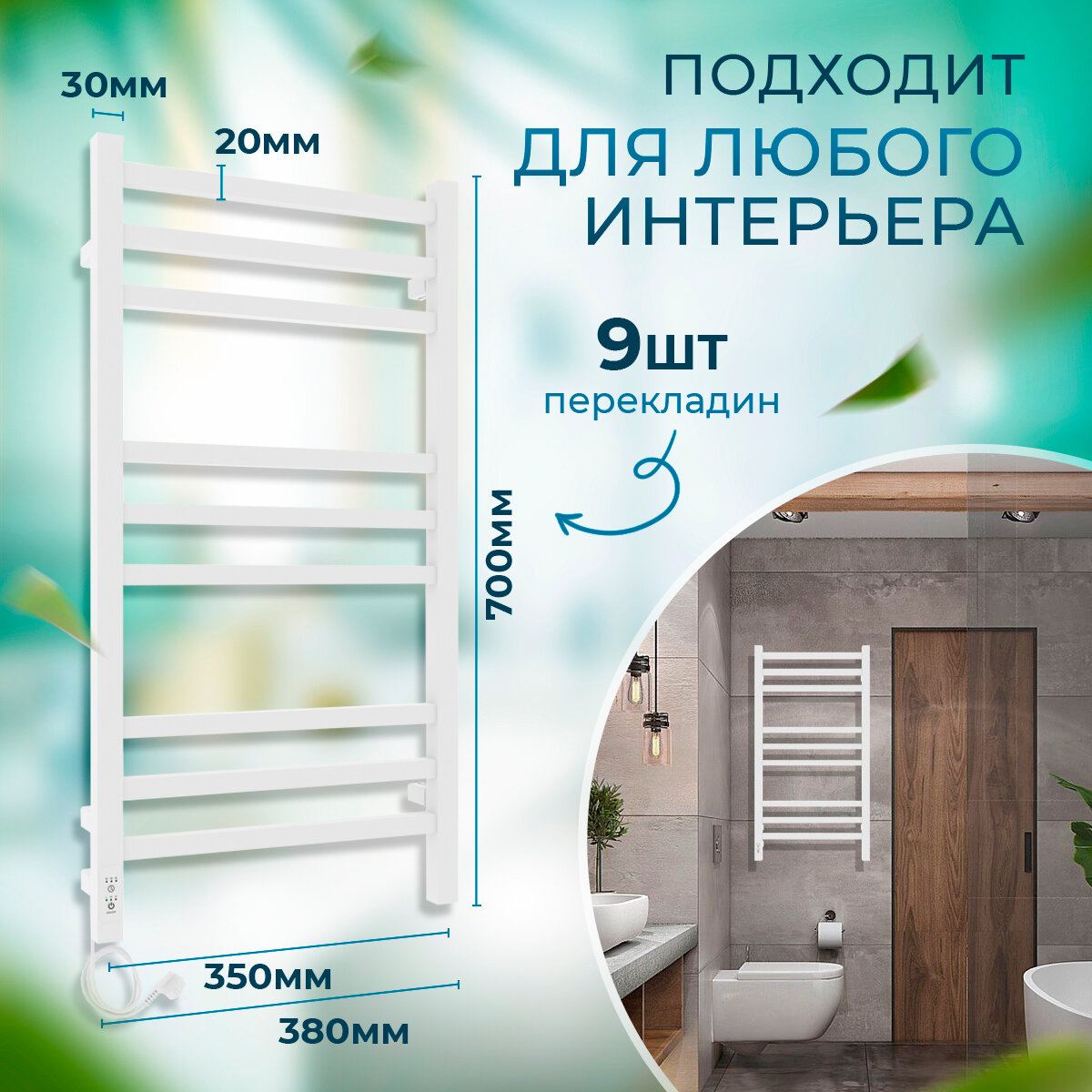 Полотенцесушитель электрический Laris Астор ЧК9 350мм 700мм левое подключение RAL 9016 (белый матовый) с таймером и терморегулятором интересное:
