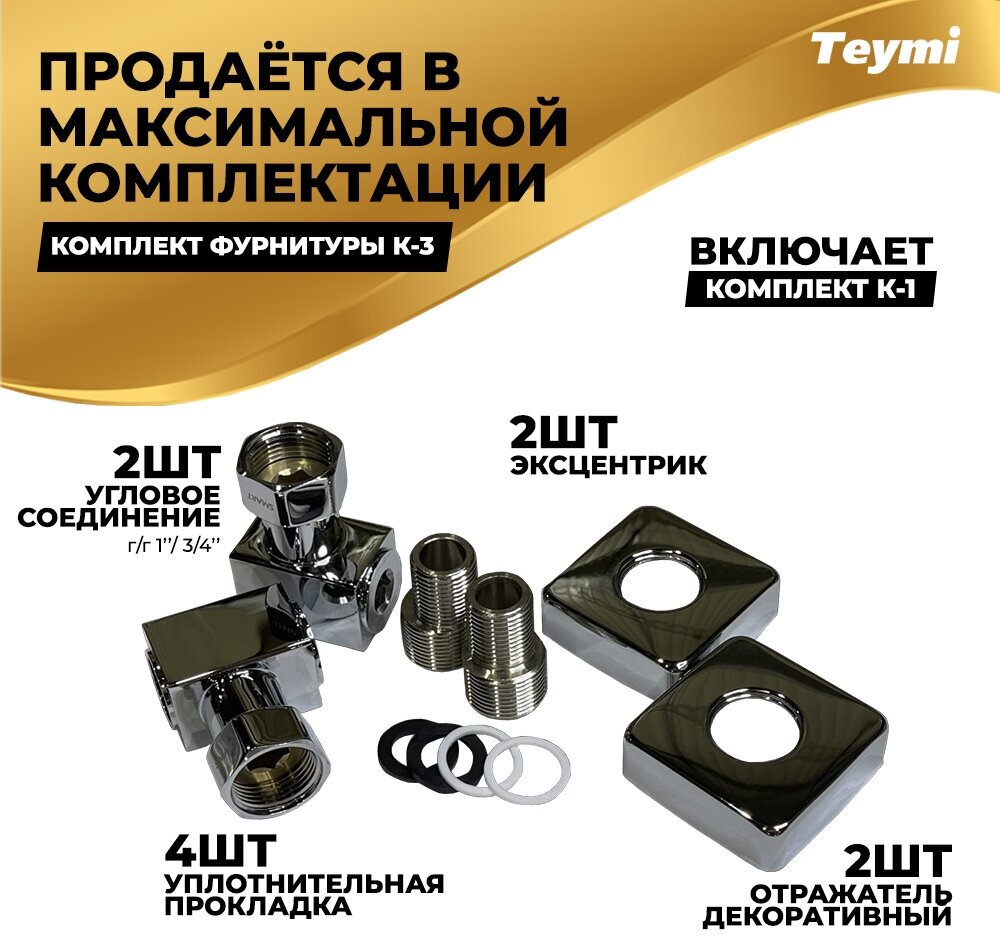 Полотенцесушитель водяной Teymi Helmi П8 50х80, прямоугольное сечение, наружняя резьба 1", в максимальной комплектации К3 интересное: