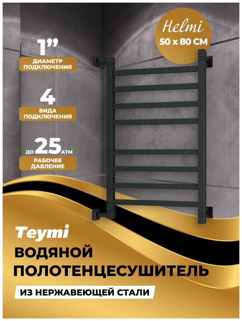 Полотенцесушитель водяной Teymi Helmi П8 50х80, прямоугольное сечение, наружняя резьба 1", в максимальной комплектации К3, черный матовый интересное: