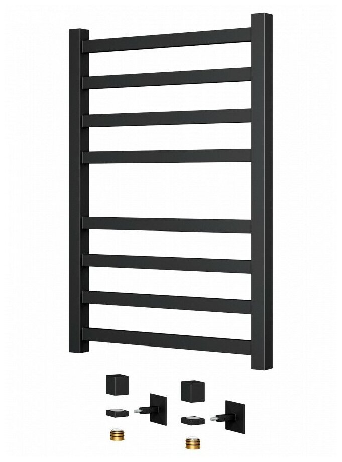 Купить Полотенцесушитель водяной Teymi Helmi П8 50х80, прямоугольное сечение, наружняя резьба 1", в максимальной комплектации К3, черный матовый