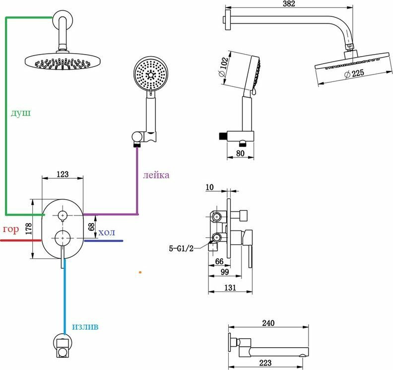 | Особенности | держатель душевой лейки |
