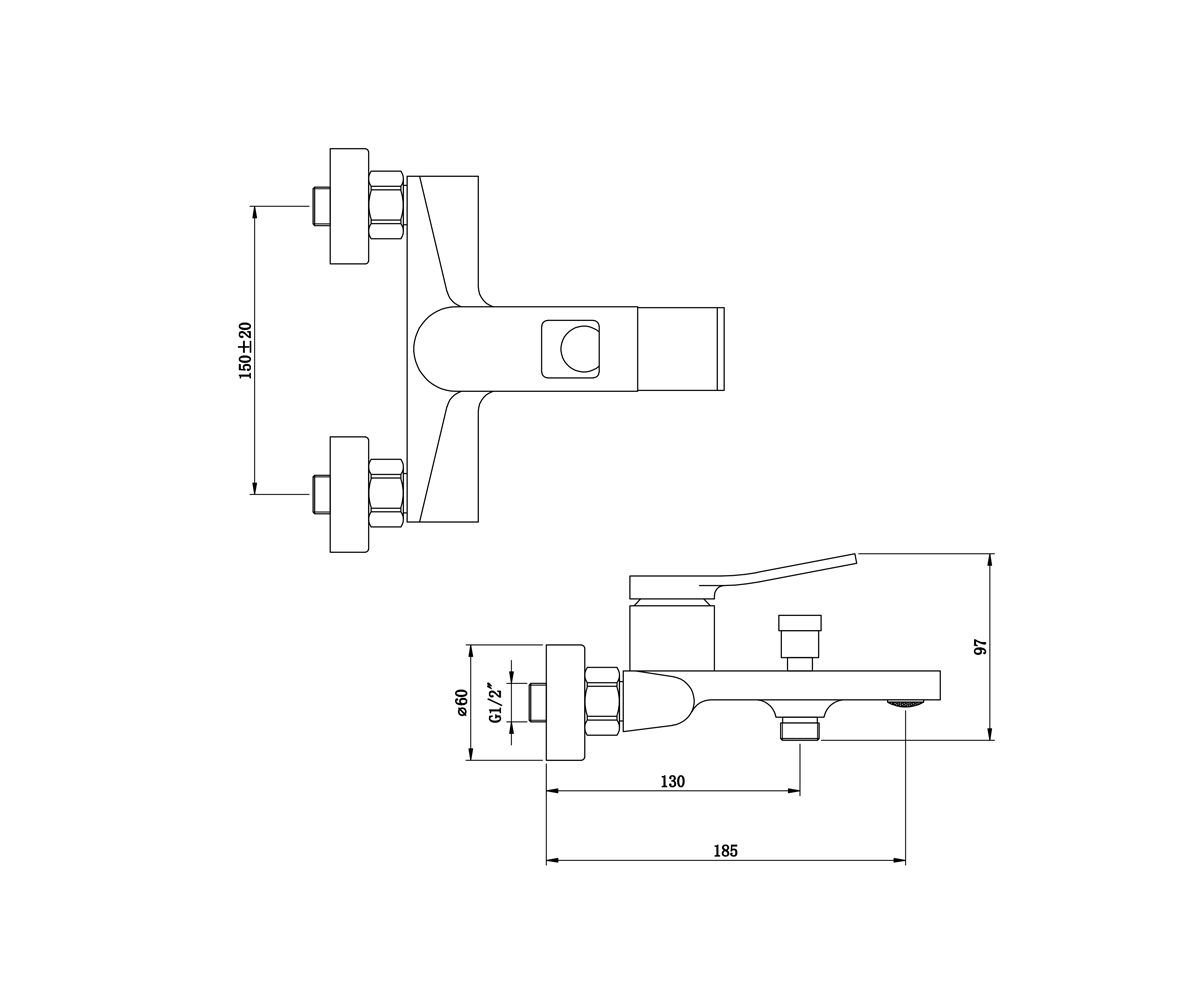 EL03CB Смеситель для ванны и душа ELEMENT хром/чёрный