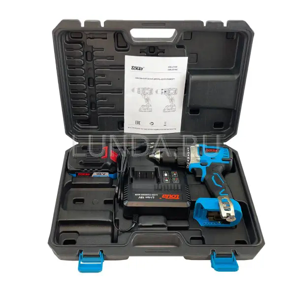 Аккумуляторная дрель-шуруповерт Toua DBLD180-1, 1АКБ+ЗУ
