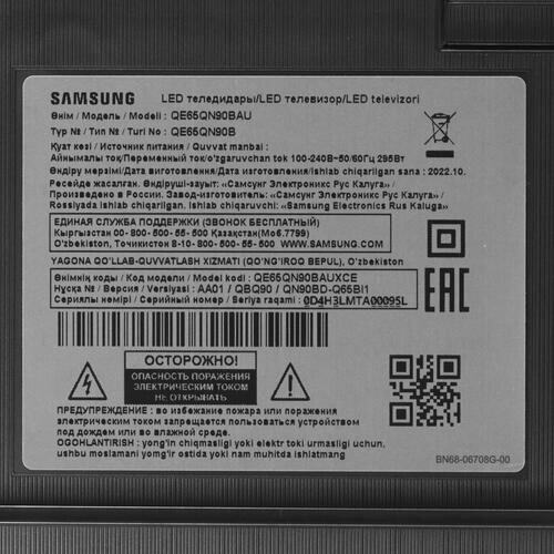 65" Телевизор Samsung QE65QN90BAU 2022 HDR, Neo QLED, LED, QLED RU, черный