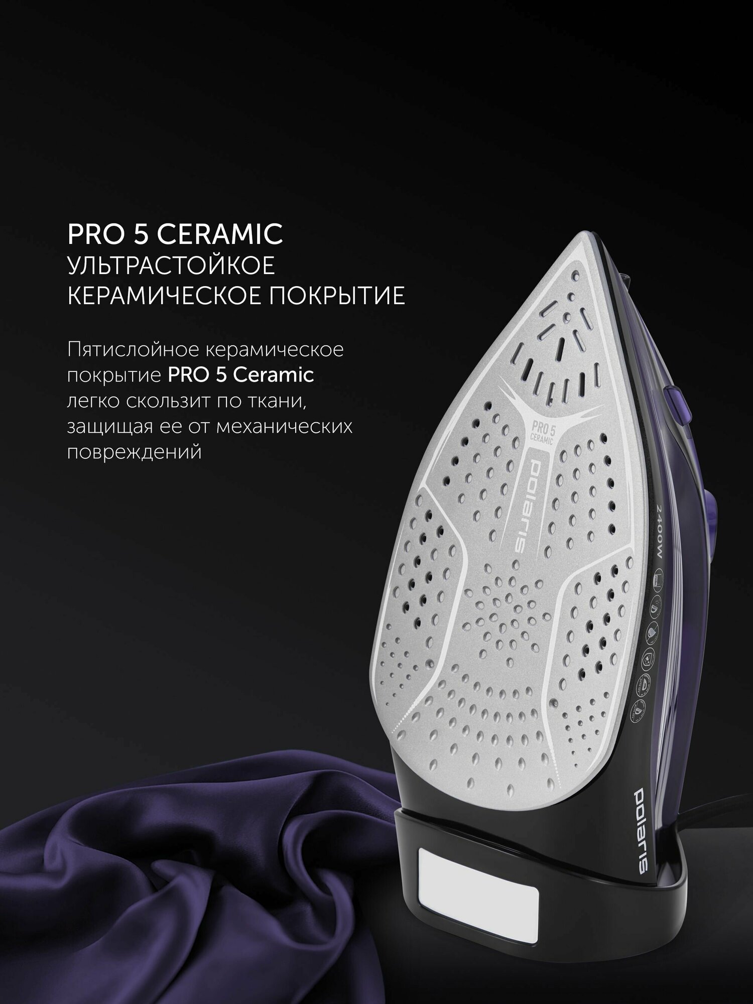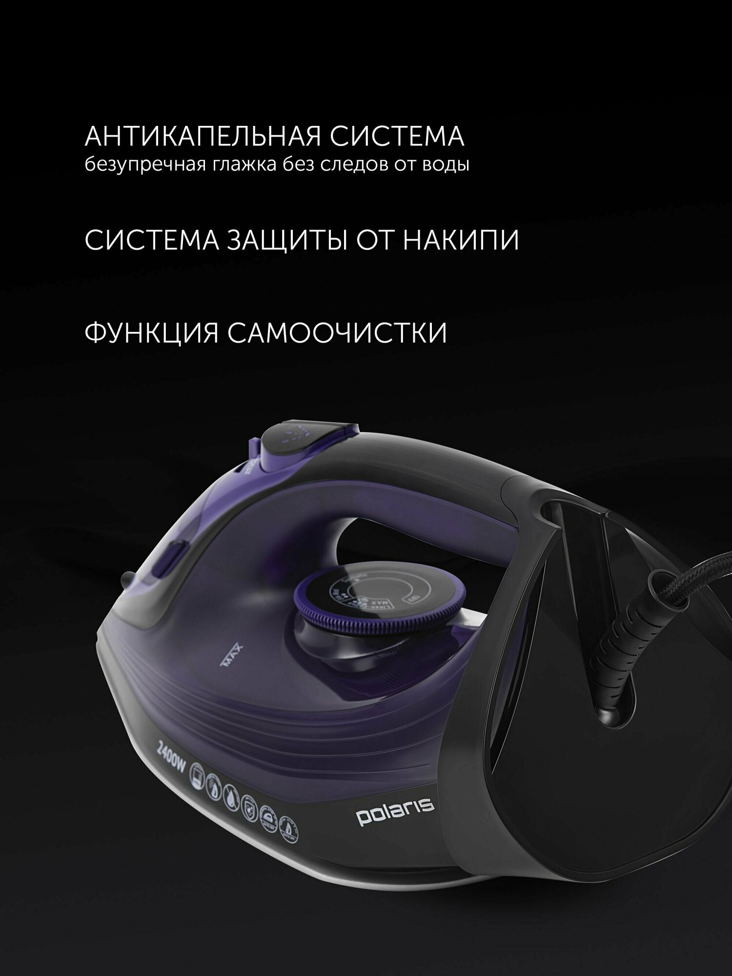 Утюг Polaris PIR 2487AK 3m, черный/фиолетовый .