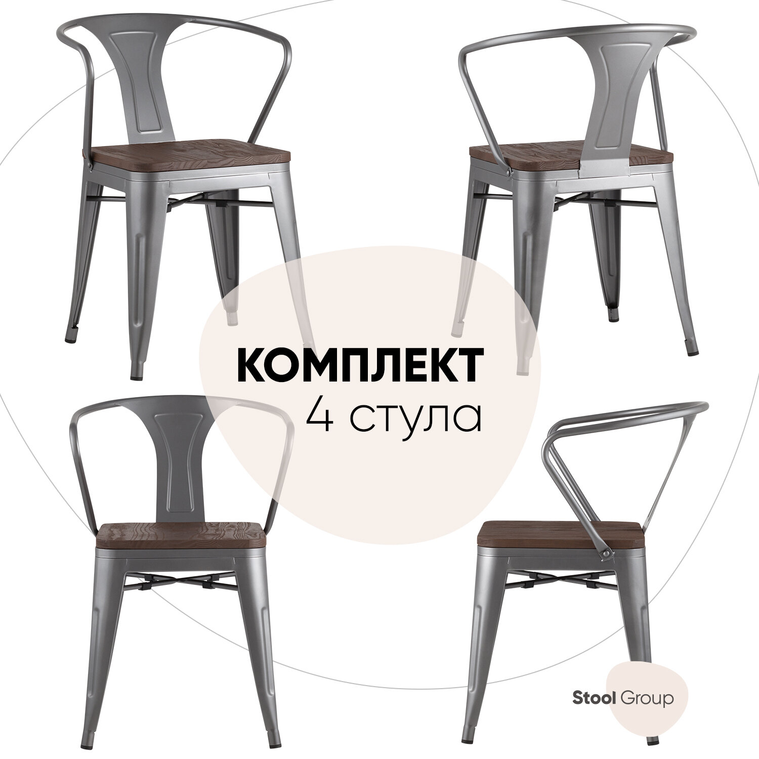 Купить Стул TOLIX ARM WOOD серебристый матовый + темное дерево(комплект 4 шт)