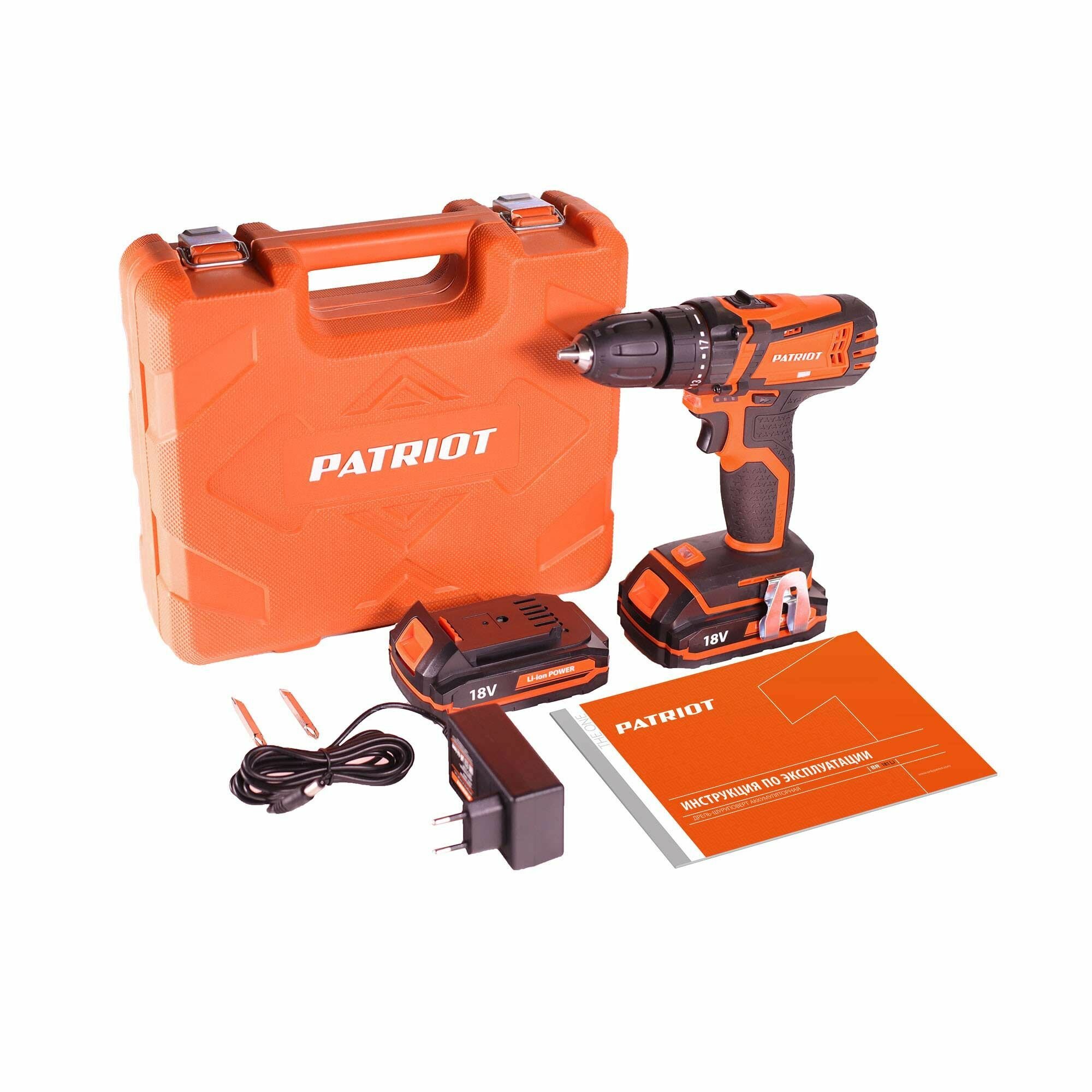 Дрель-шуруповерт аккумуляторная PATRIOT BR 181Li, 2Ач, 18В, 2 АКБ и ЗУ в комплекте