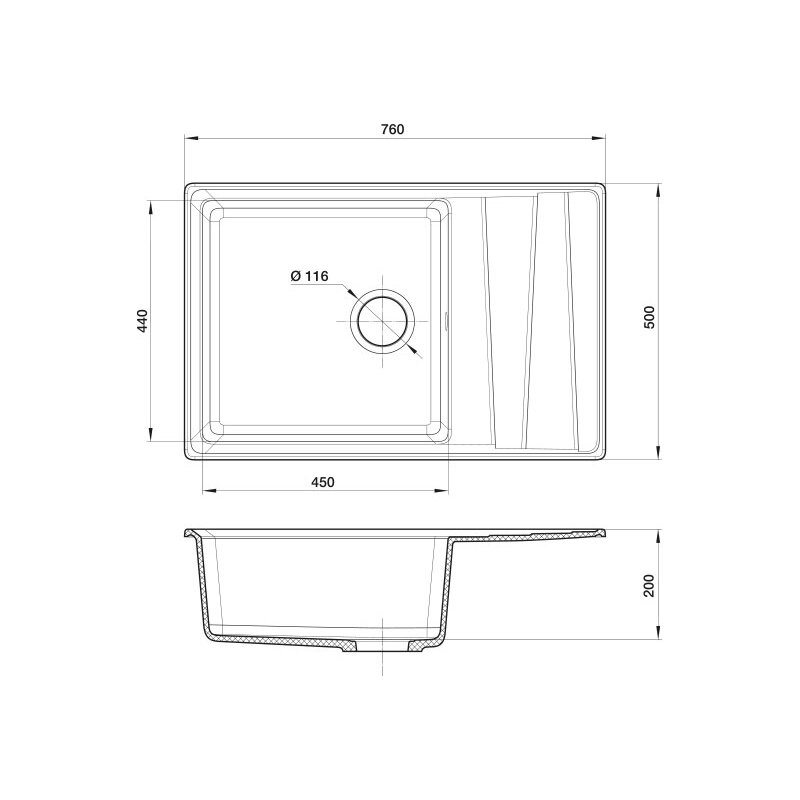 | Плюсы: | Отличная глубокая мойка. Большая чаша, маленькое крыло - я искала именно такую. На крыле красивые четкие линии, выглядит современно, а не как мойки со скругленными краями и «ложбинками».