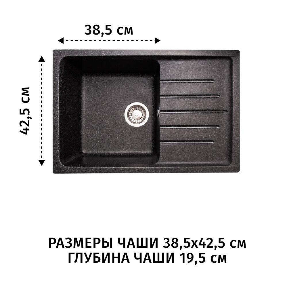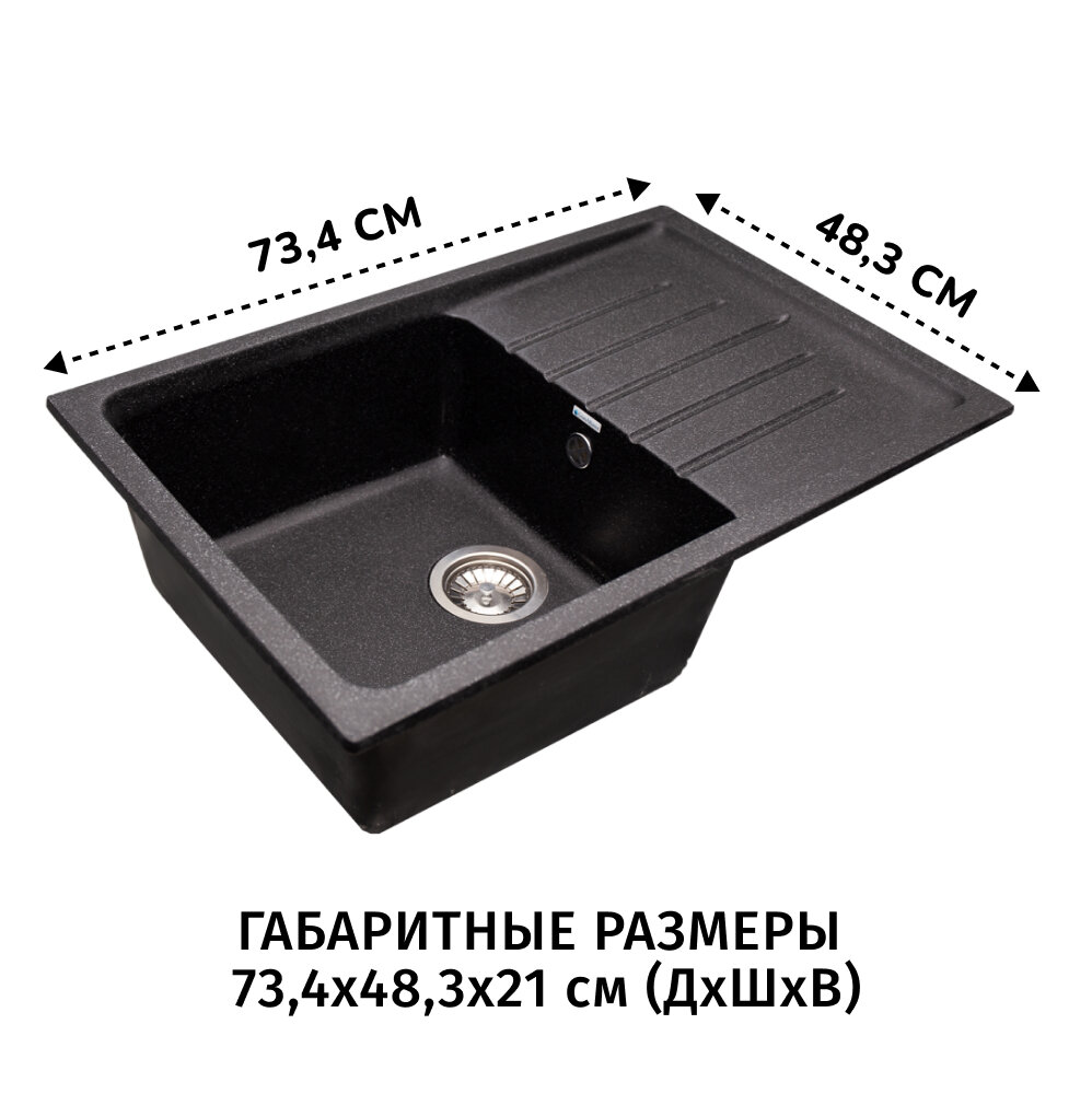Мойка для кухни из искусственного камня прямоугольная с крылом (73,4x48,3), черная