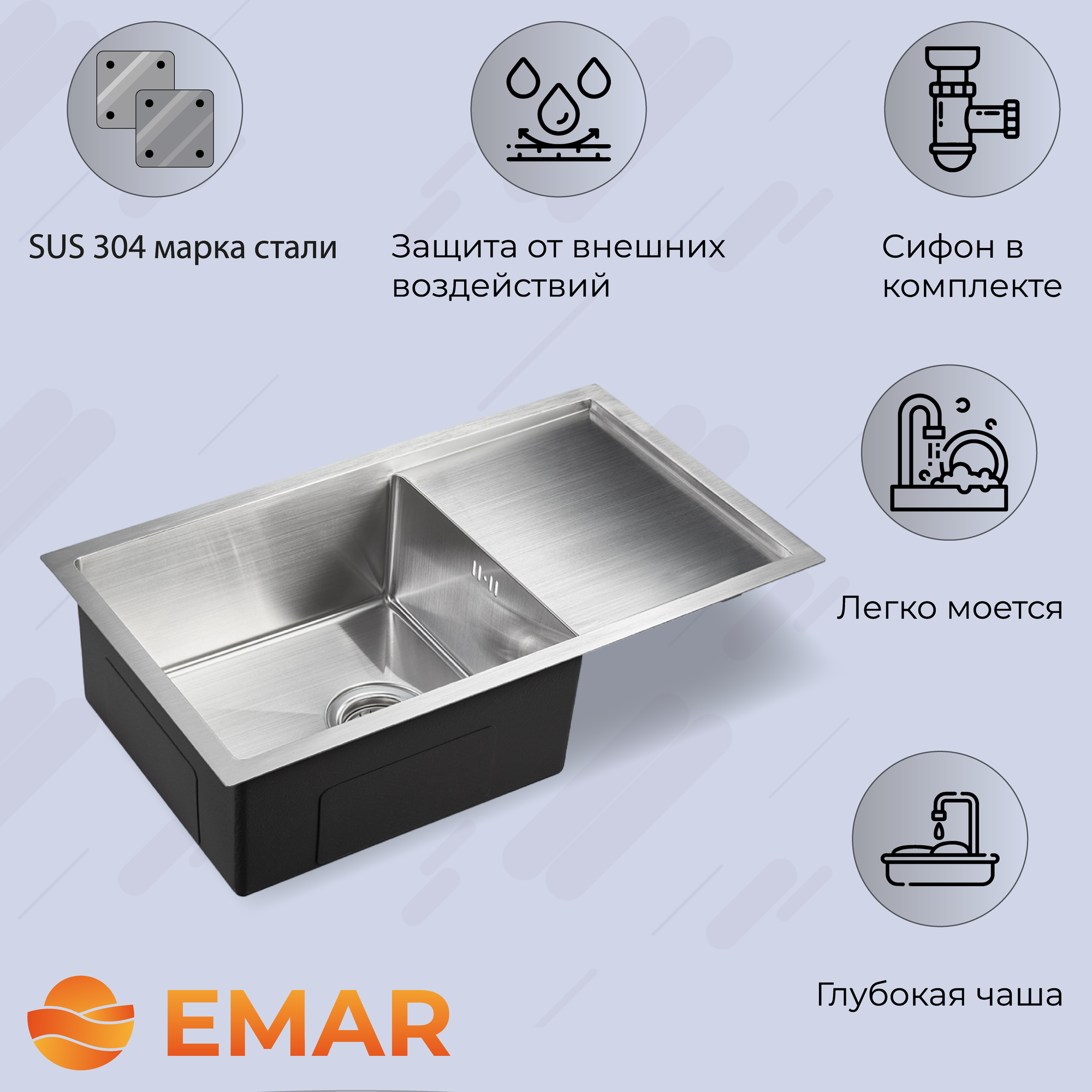 Emar EMB-130 PVD Nano Satine, мойка, нержавеющая сталь сатин
