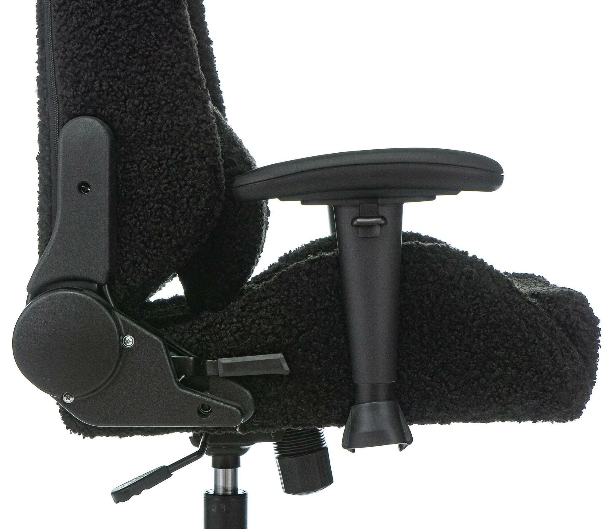 | Плюсы: | Выглядит супер, как плюшевая игрушка. Опускается и поднимается без проблем, спинка откидывается легко. Колеса прорезиненные. подлокотники регулируются по высоте и направлению. |