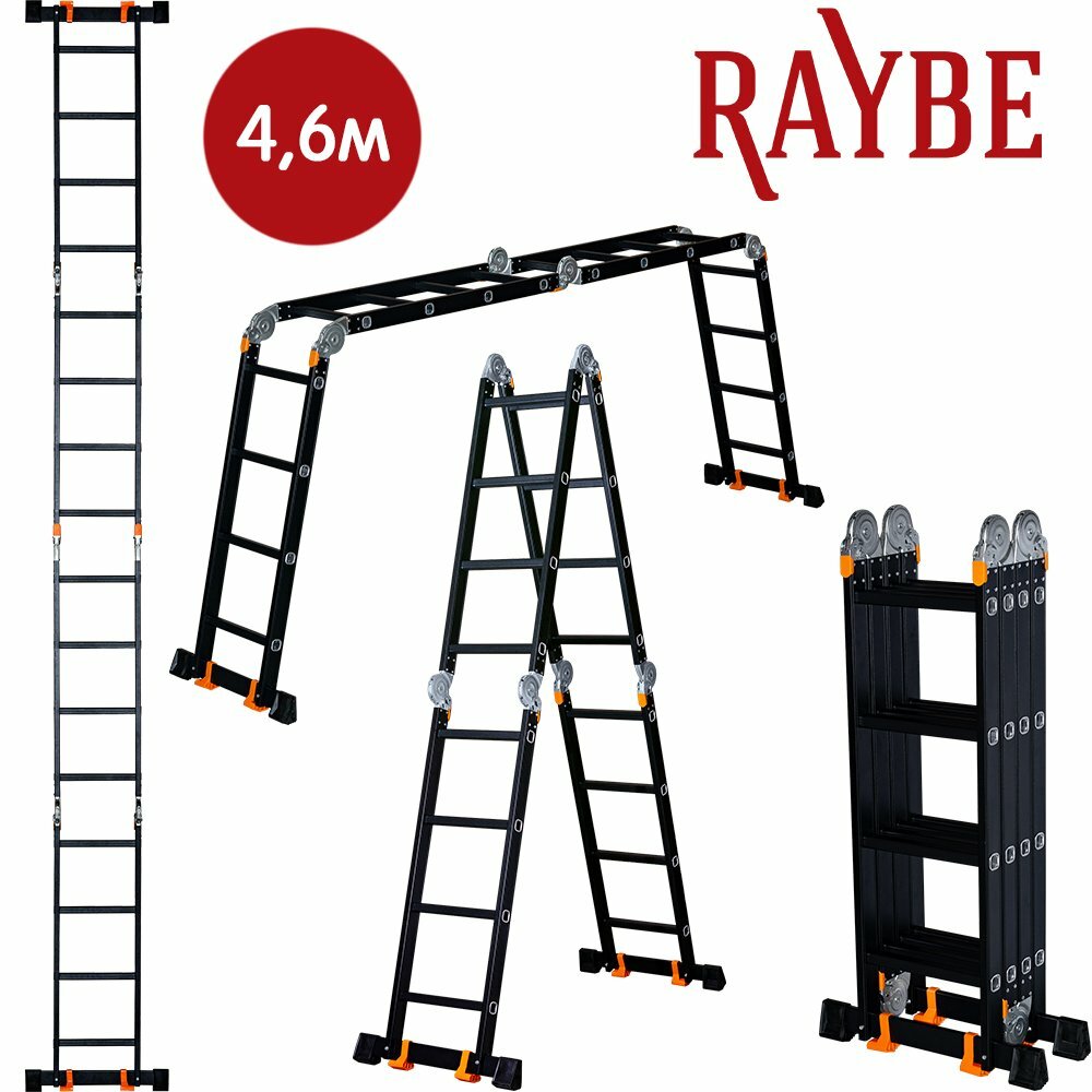 Лестница-стремянка 4х4 трансформер алюминиевая Raybe RTK460 4,6м интересное: