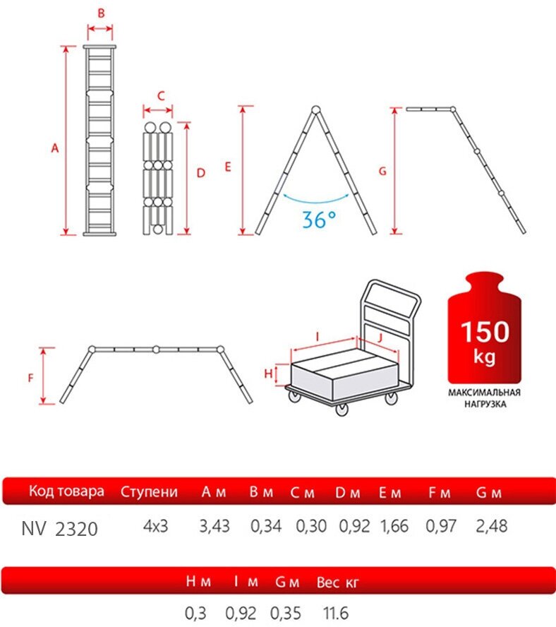 Новая высота NV 2320 лестница-трансформер четырехсекционная 3 ступени бытовая