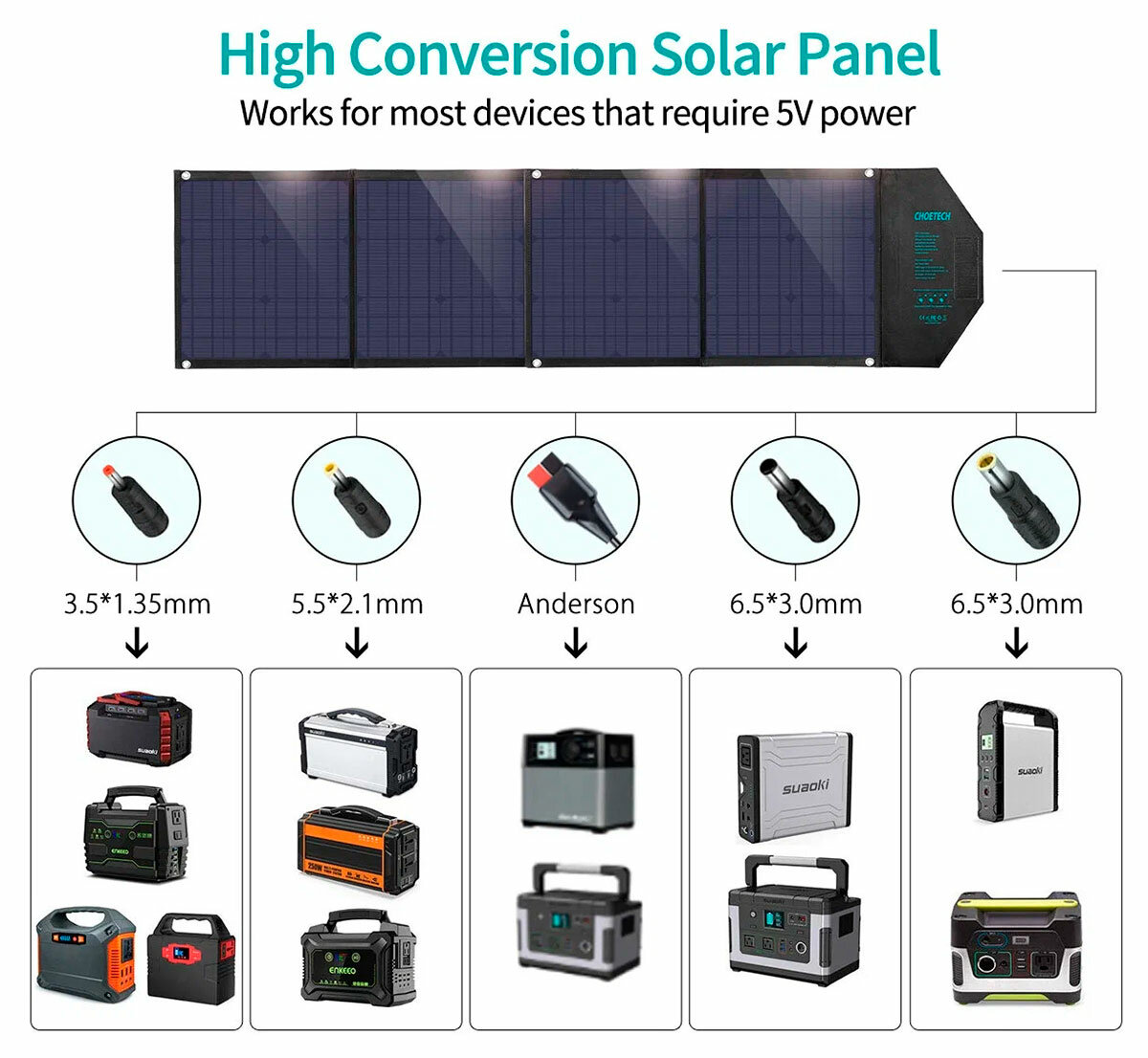 Портативная складная солнечная батарея - панель Choetech 80 Вт solar power (SC007) интересное: