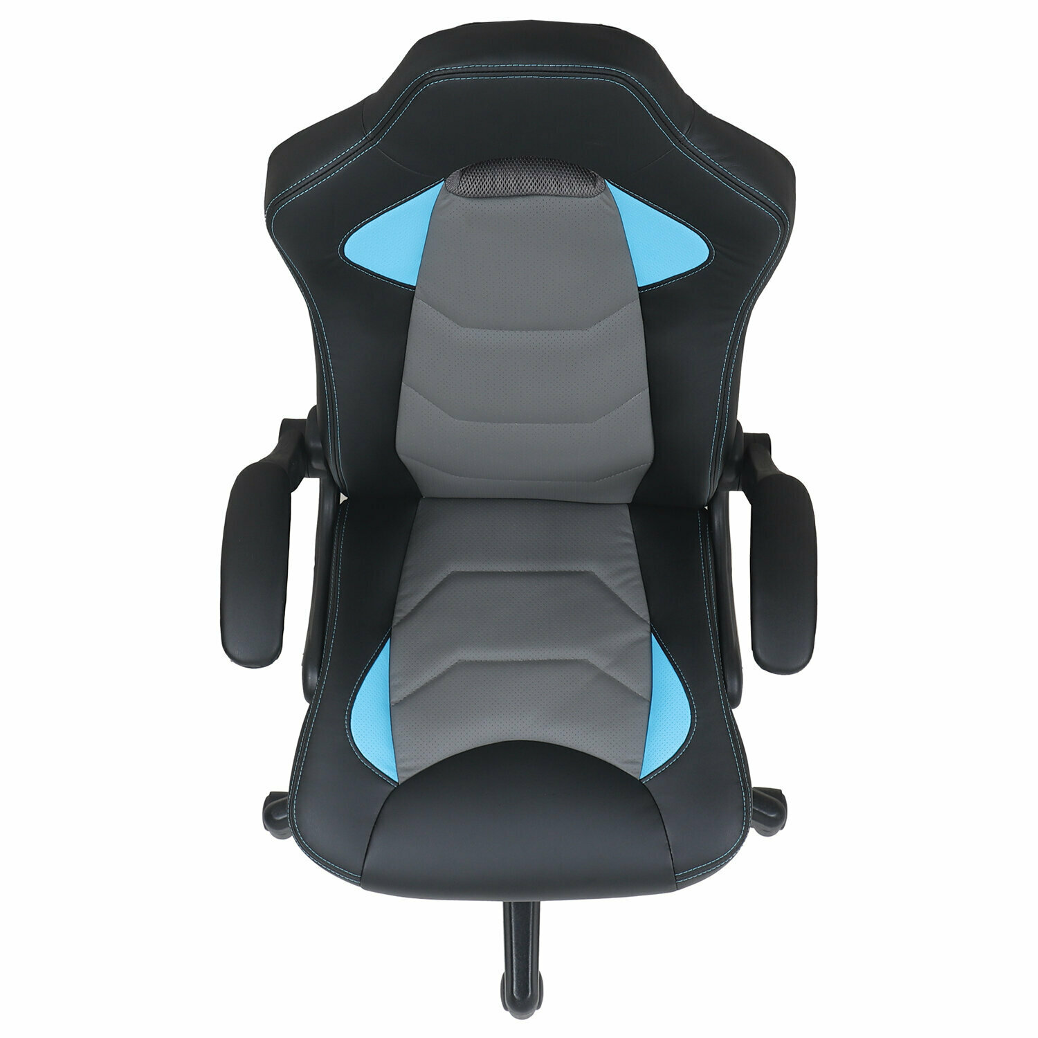 Кресло компьютерное BRABIX "Skill GM-005", откидные подлокотники, экокожа, черное/голубое, 532497 интересное: