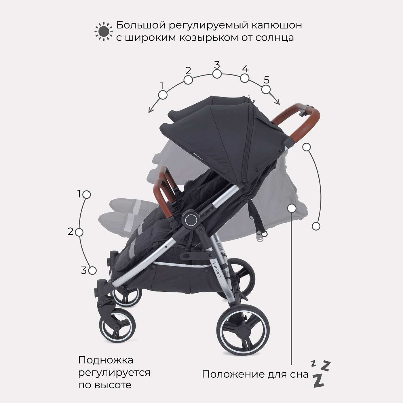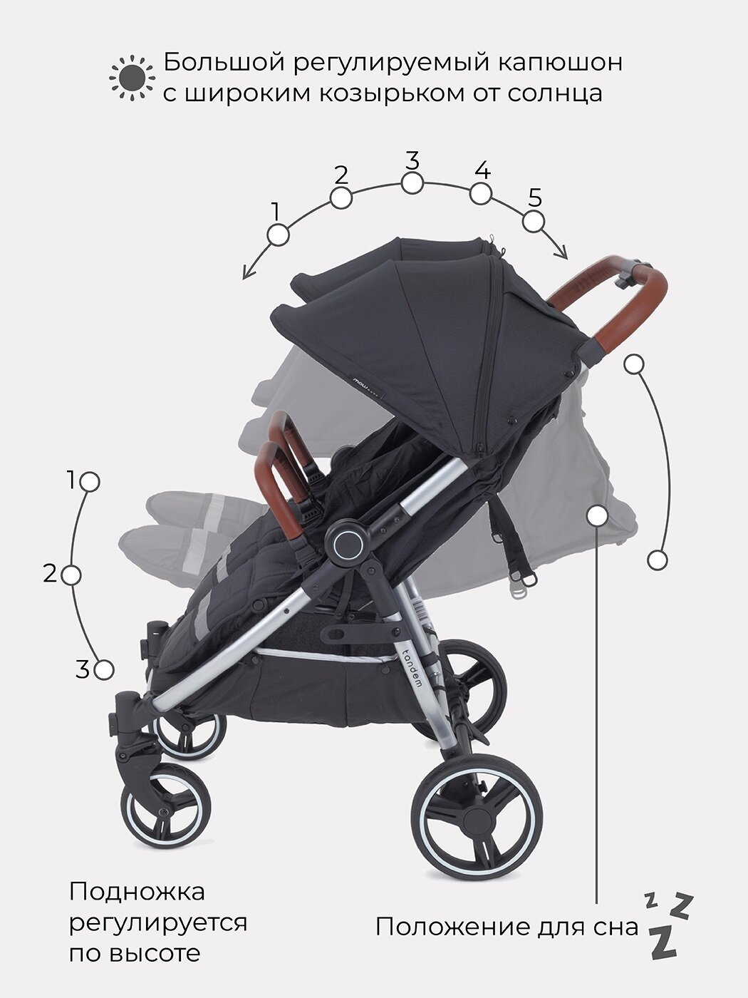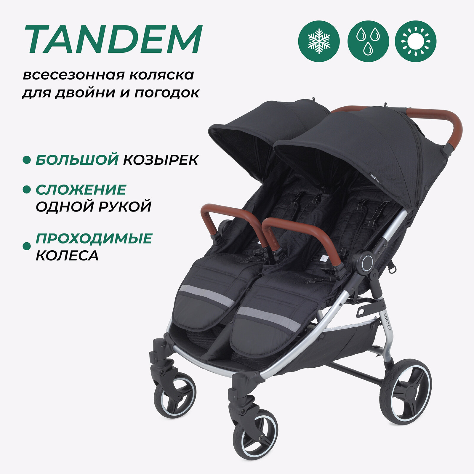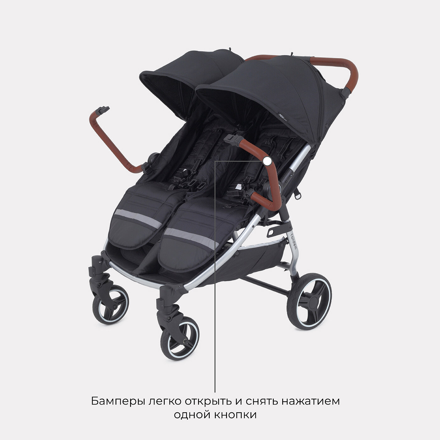 Коляска детская прогулочная для близнецов MOWbaby Tandem MB170 Black интересное: