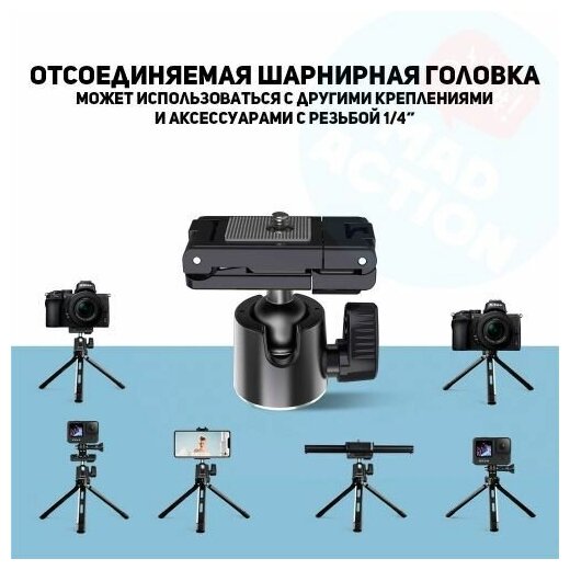 Металлический штатив Telesin с шарнирной головкой (27-150 мм) интересное: