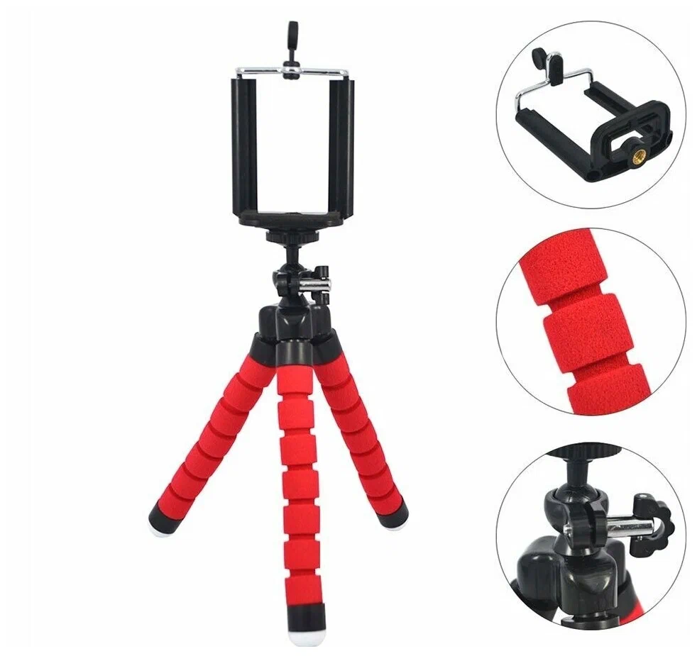 Настольный мини штатив 17 см / трипод / (тренога) гибкий с креплением для смартфона /красный