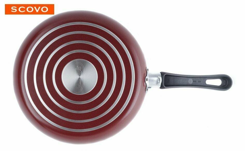 Сковорода SCOVO expert СЭ-027 стеклянная крышка, 22 см, красный