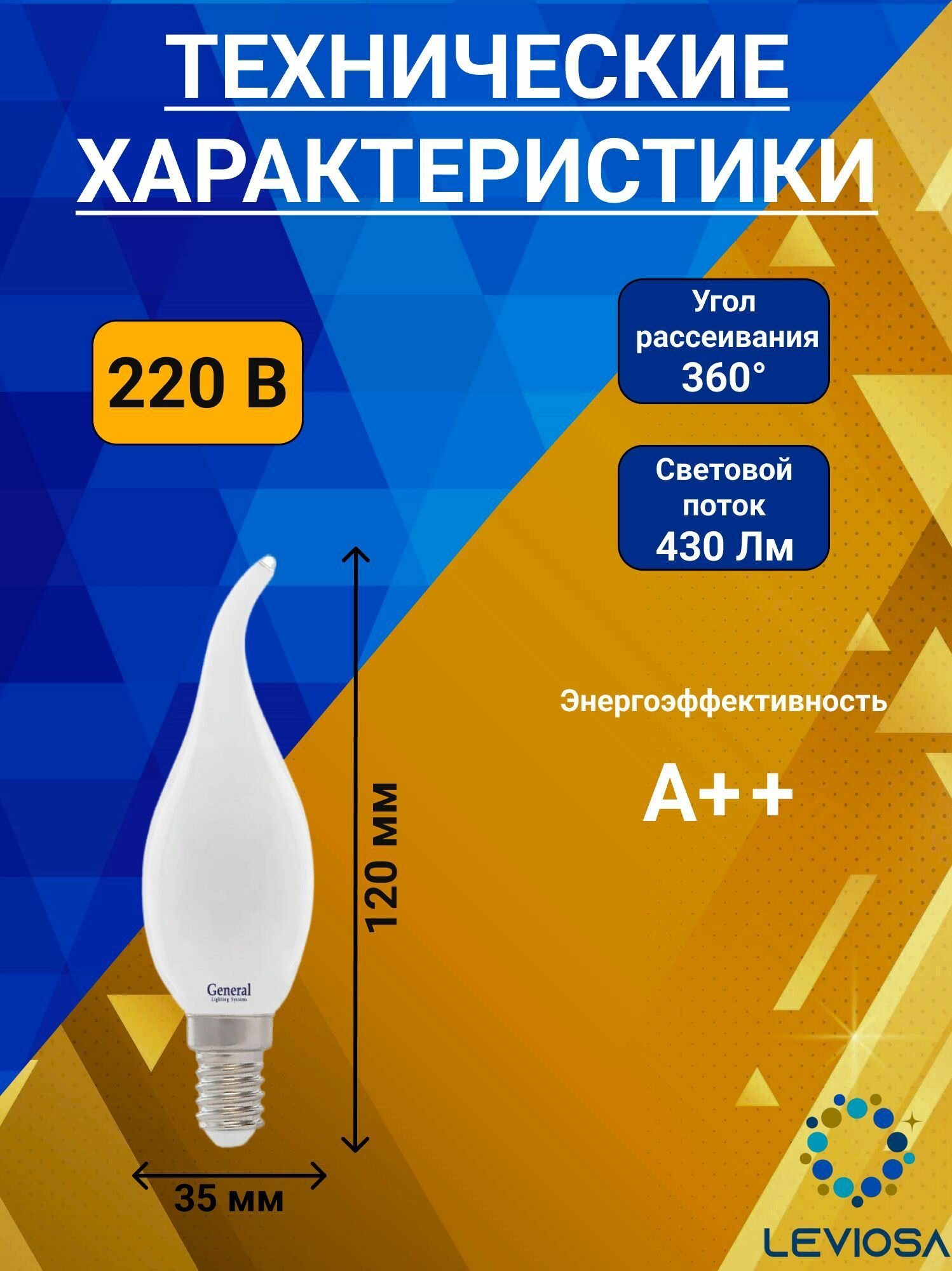 General, Лампа светодиодная филаментная, Комплект из 10 шт., 7 Вт, Цоколь E14, 2700К, Форма лампы Свеча на ветру интересное: