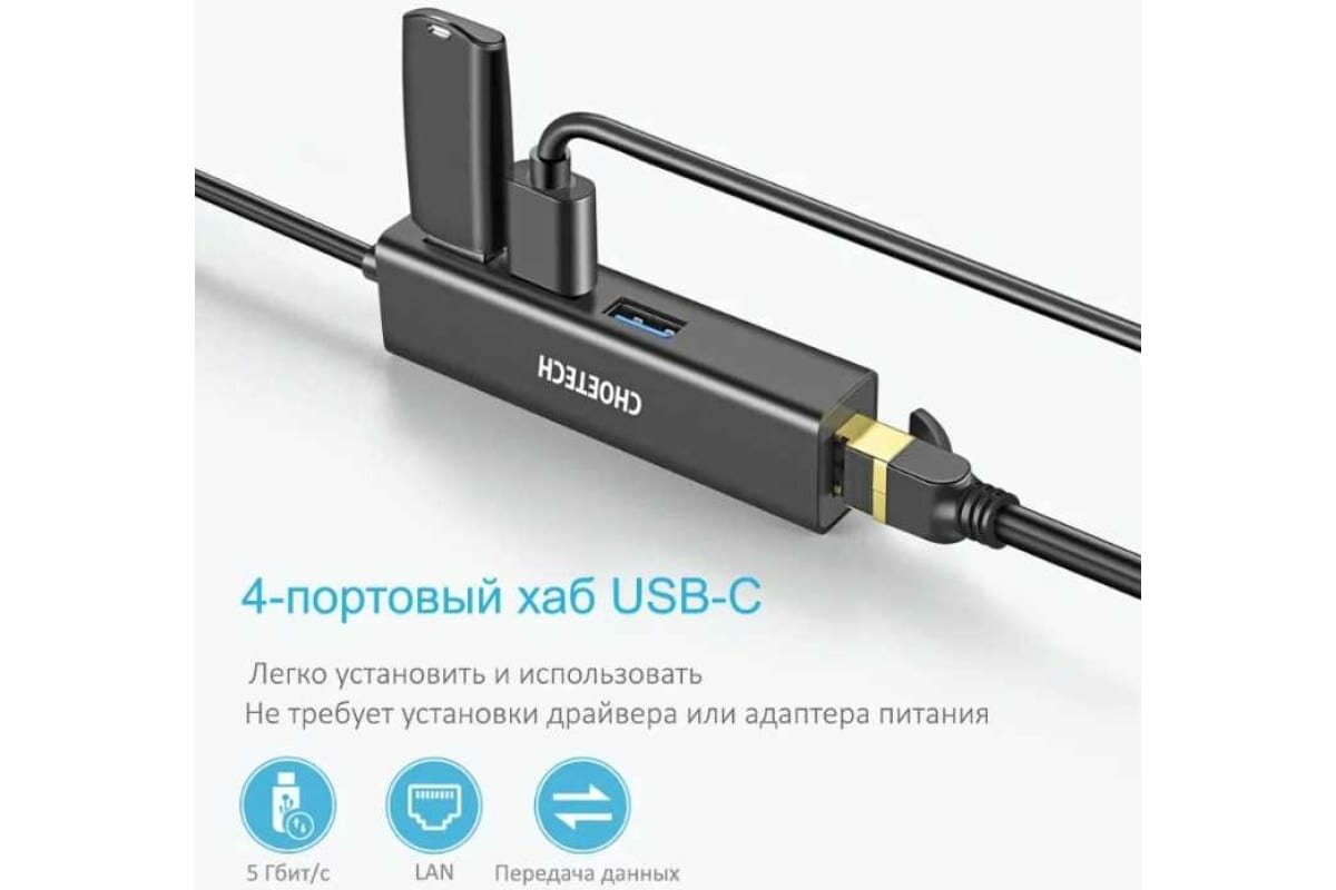 USB-хаб 4 в 1 Choetech с поддержкой Ethernet