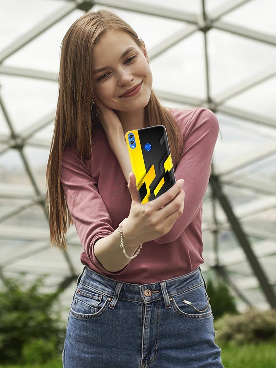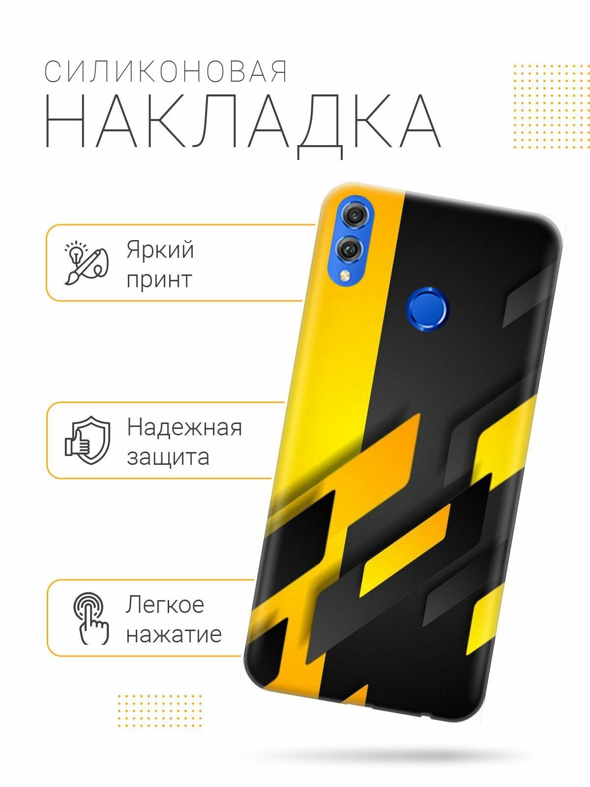 Ультратонкий силиконовый чехол-накладка для Honor 8X с принтом "Черно-желтая абстракция" интересное: