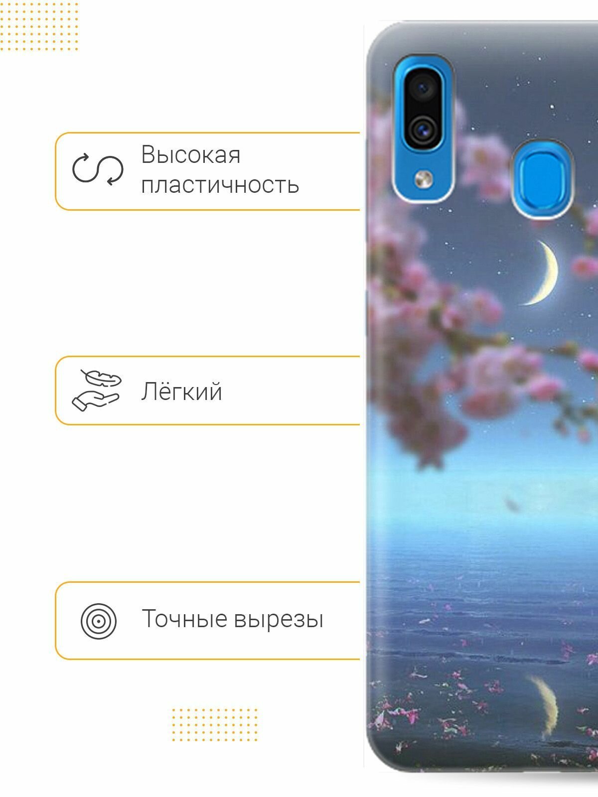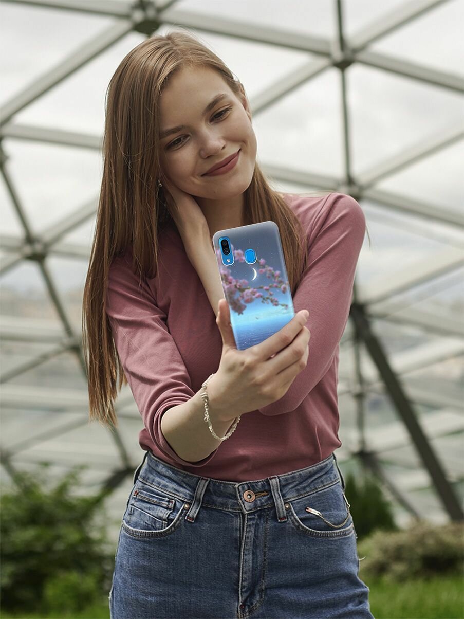 Ультратонкий силиконовый чехол-накладка для Samsung Galaxy A20 / A30 с принтом "Месяц и сакура" интересное: