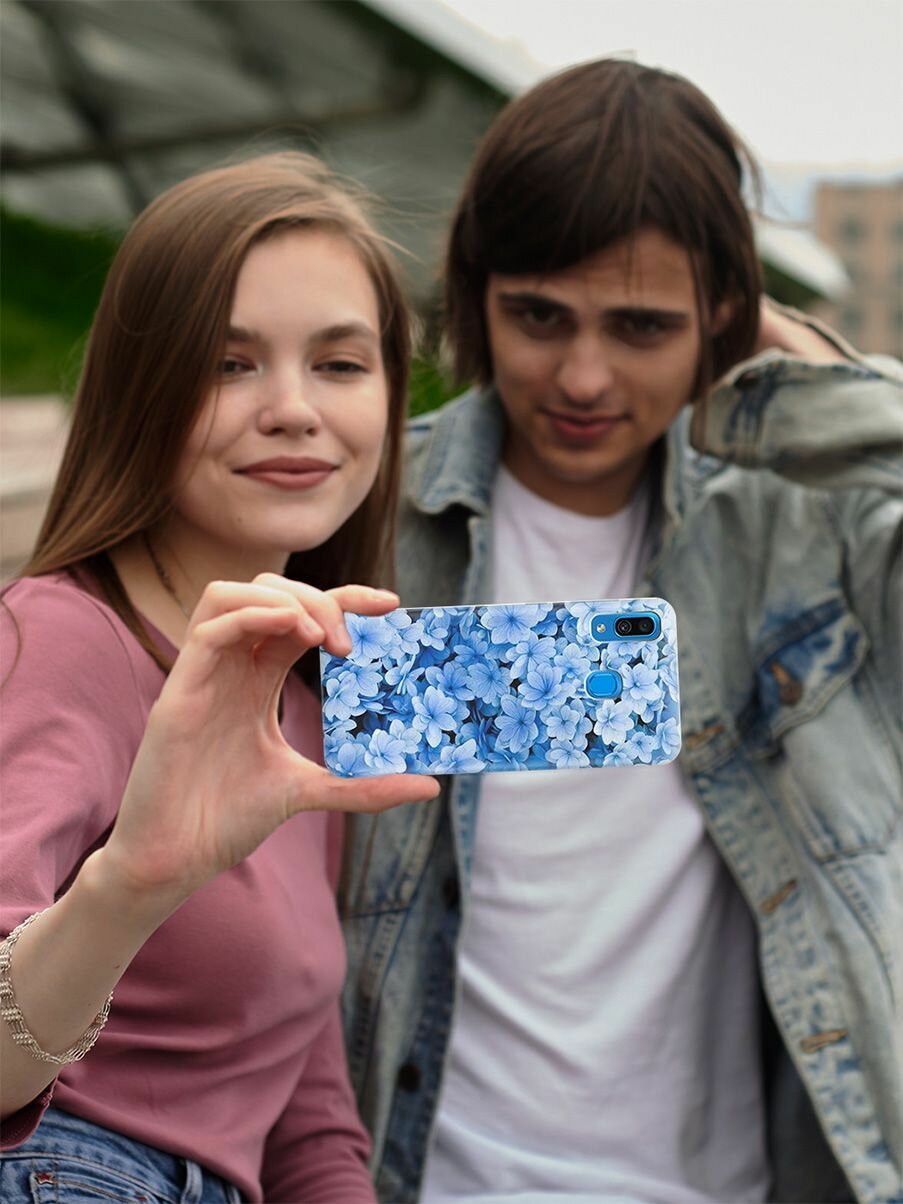 RE:PA Накладка Transparent для Samsung Galaxy A20 / A30 с принтом "Голубые цветочки" интересное: