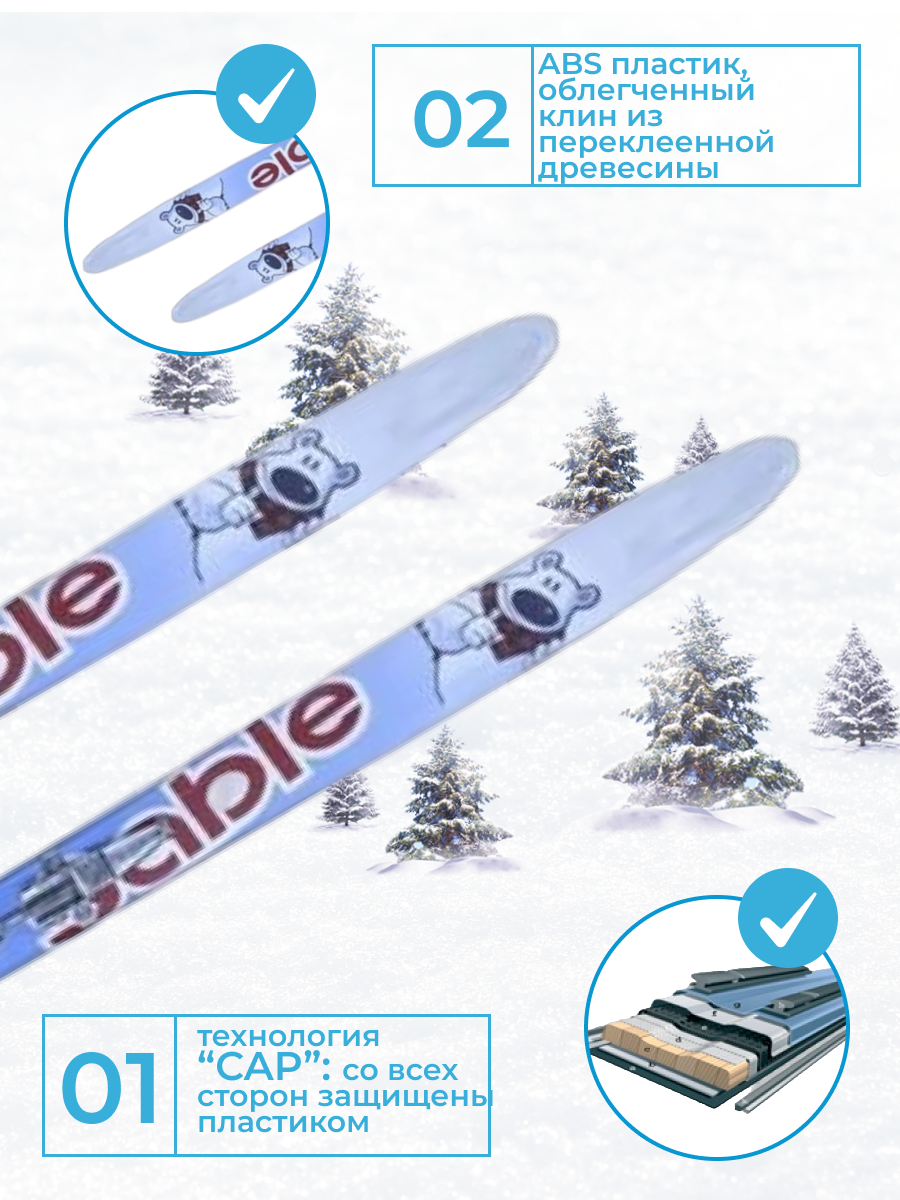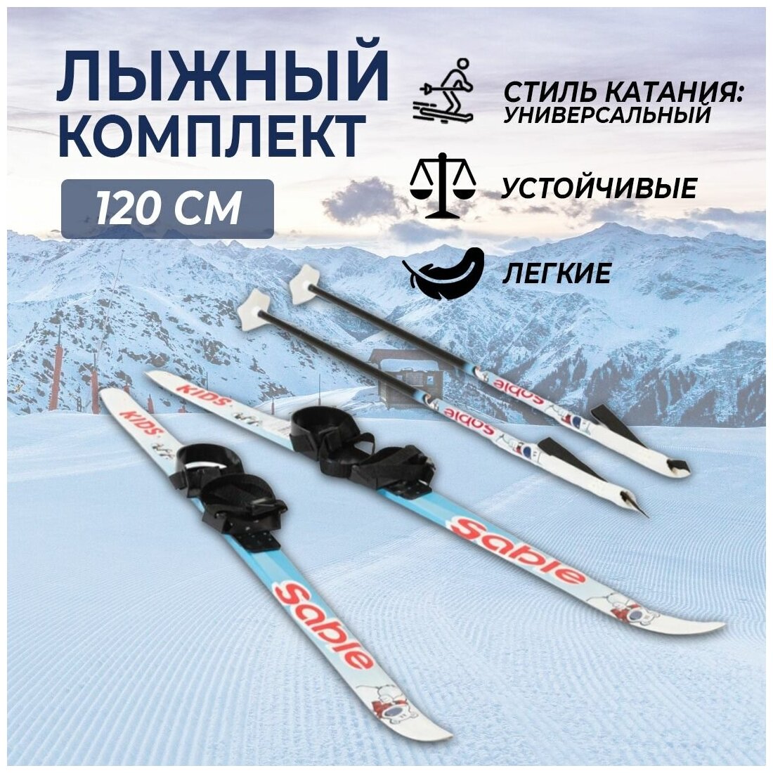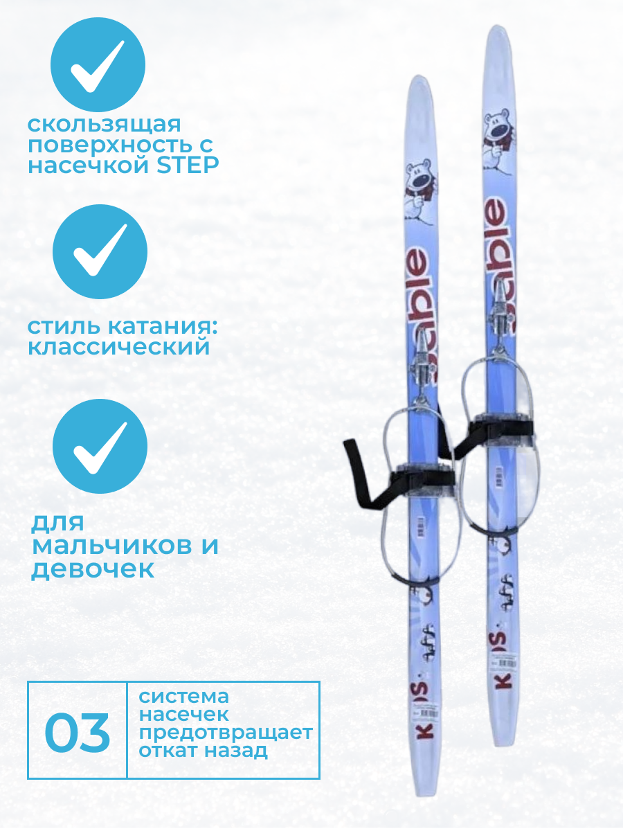 СохранитьЛыжный комплект детский с кабельным креплением (лыжи, палки, крепления) 120 см STC степ KID Blue интересное: