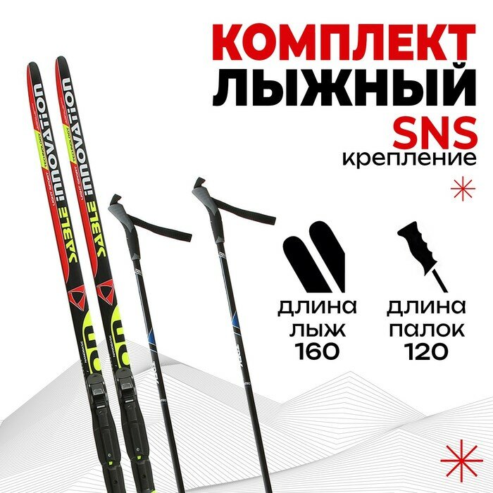 Комплект лыжный: пластиковые лыжи 160 см с насечкой, стеклопластиковые палки 120 см, крепления SNS, .