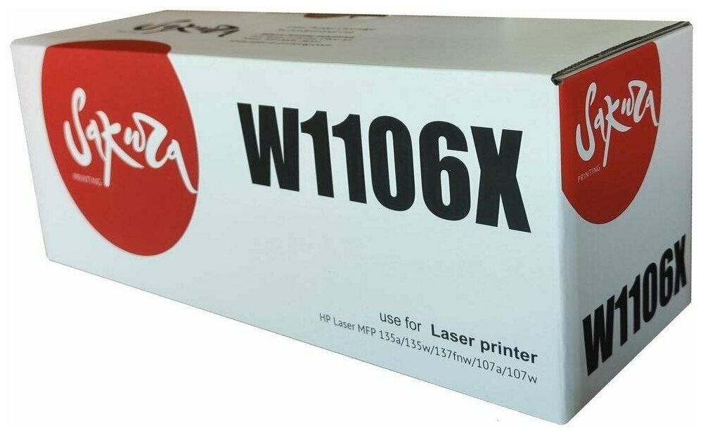 Картридж Sakura W1106A (106A) совместим с принтерами и МФУ HP LJ 107a / LJ 107r / LJ 107w / LJ 135a / LJ 135r/LJ 135w/LJ 137fnw