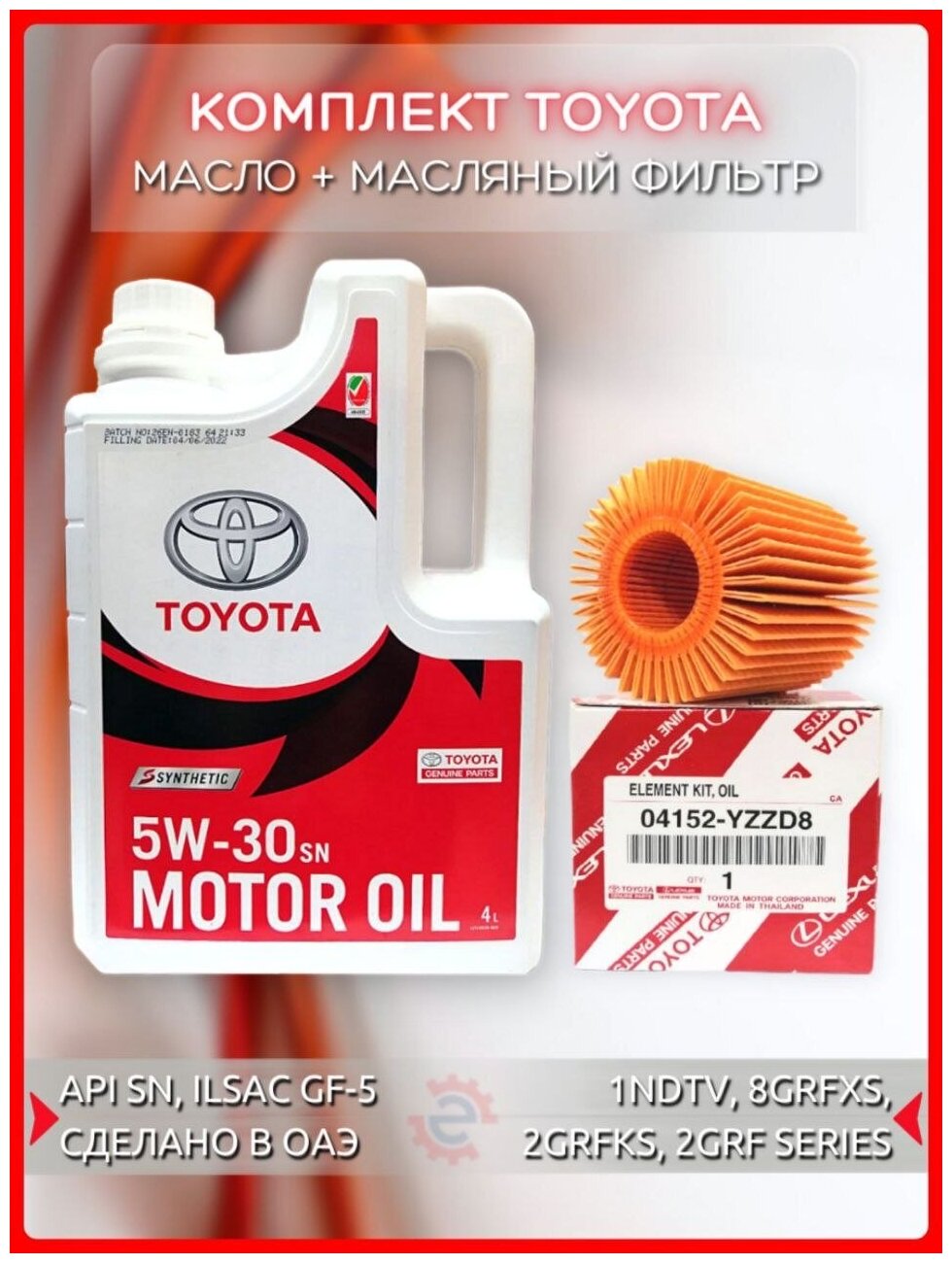 Комплект Toyota: Моторное масло 5W-30 + масляный фильтр 04152yzzd8 интересное: