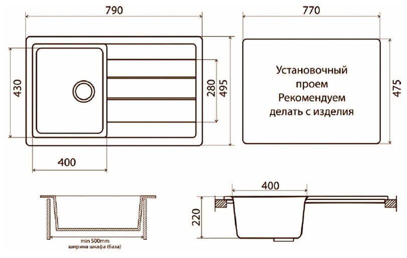 | Минусы: | отверстие для смесителя пришлось делать самому |