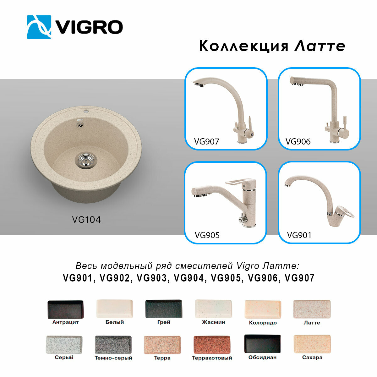Кухонная мойка из искусственного камня Vigro VG104 латте (505*505*210)