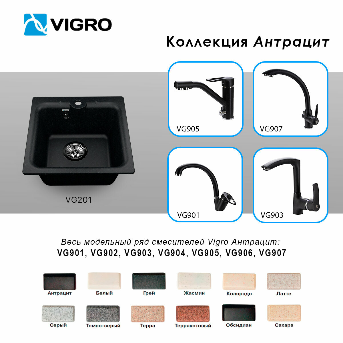 Ниже Вы можете прочитать отзывы на Мойка кухонная врезная Vigro VG201 антрацит (410*410*180), ознакомится с подробными характеристиками, посмотреть интересные обзоры и фотографии на Мойка кухонная врезная Vigro VG201 антрацит (410*410*180).