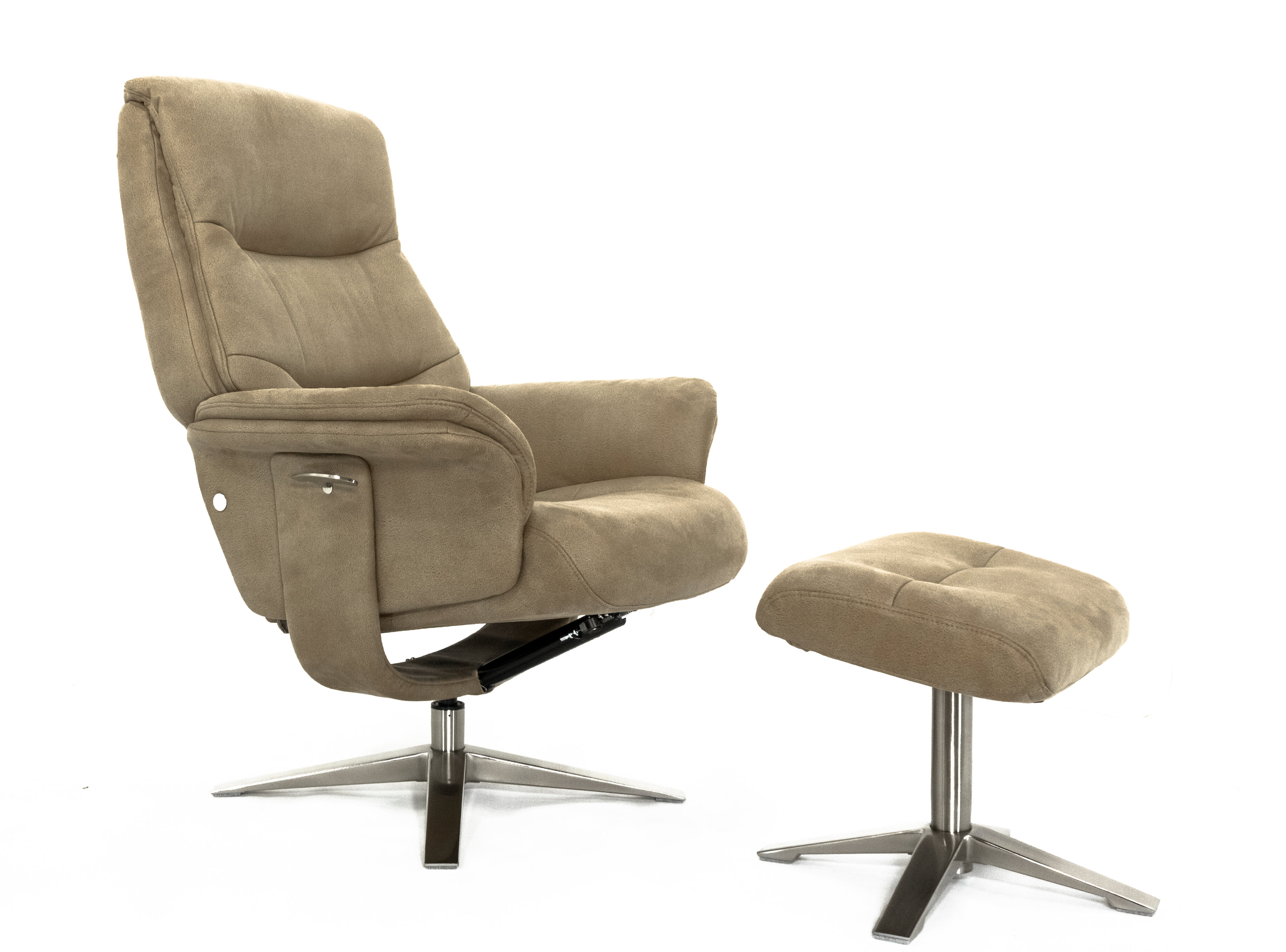 Кресло-реклайнер с пуфом для ног Falto Relax Boss нубук бежевый