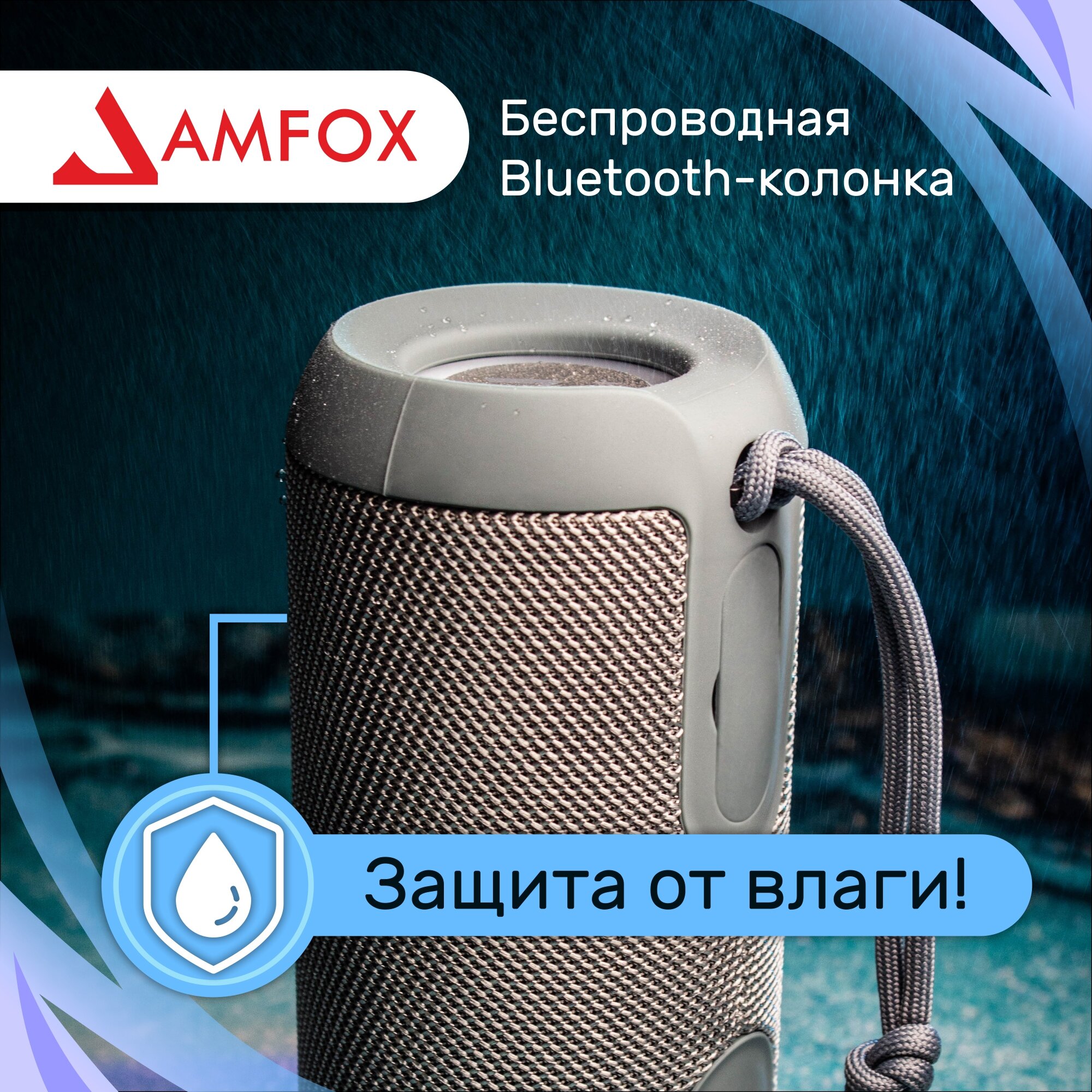 Влагозащитная портативная колонка bluetooth, AMFOX, ASP-777, 2 динамика 10 Вт, как jbl акустика с подсветкой, xiaomi