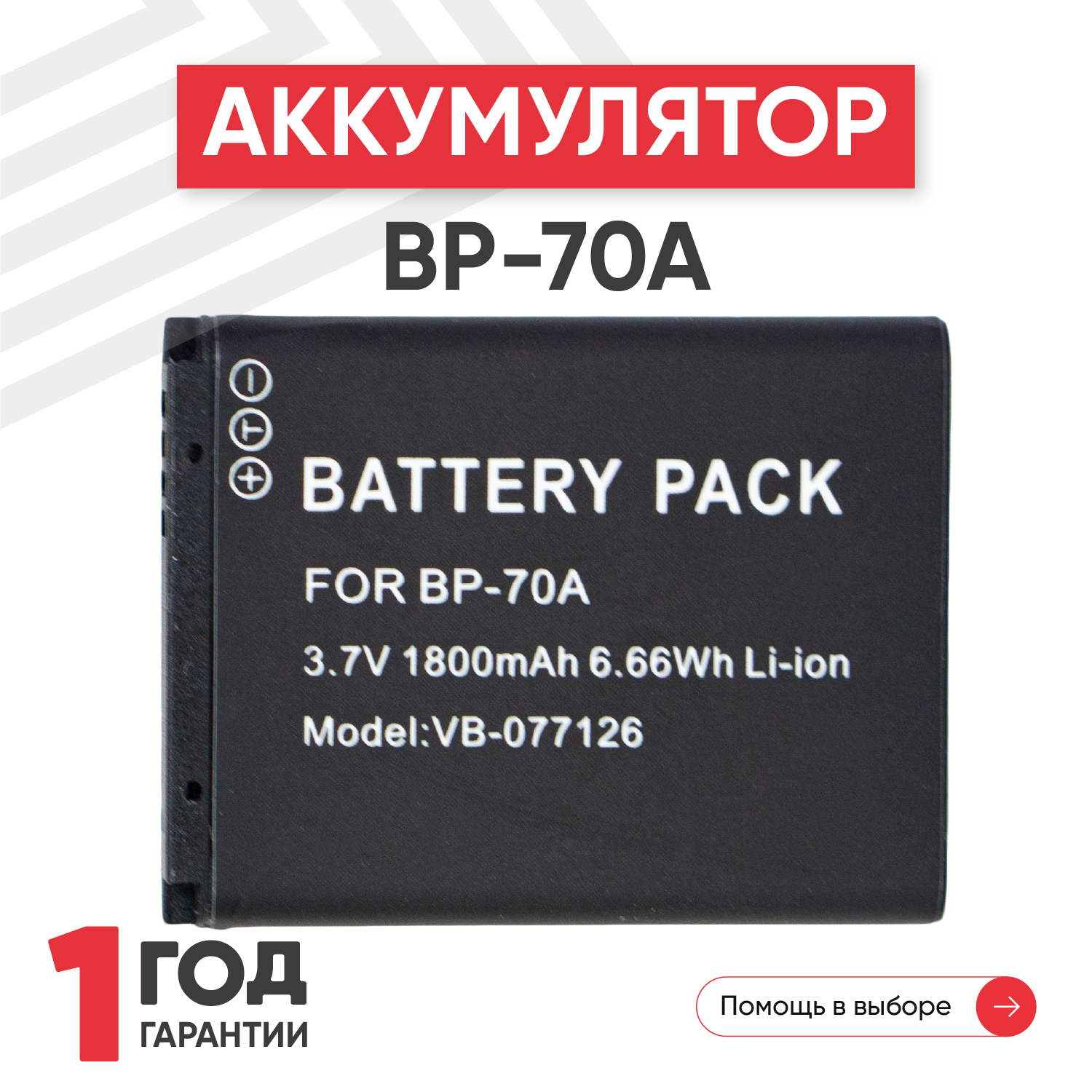 Купить Аккумулятор (АКБ, аккумуляторная батарея) BP-70A для фотоаппарата Samsung DigiMax AQSamsung DigiMax AQ, ES, PL, SL, ST, 3.7В, 1800мАч, Li-Ion