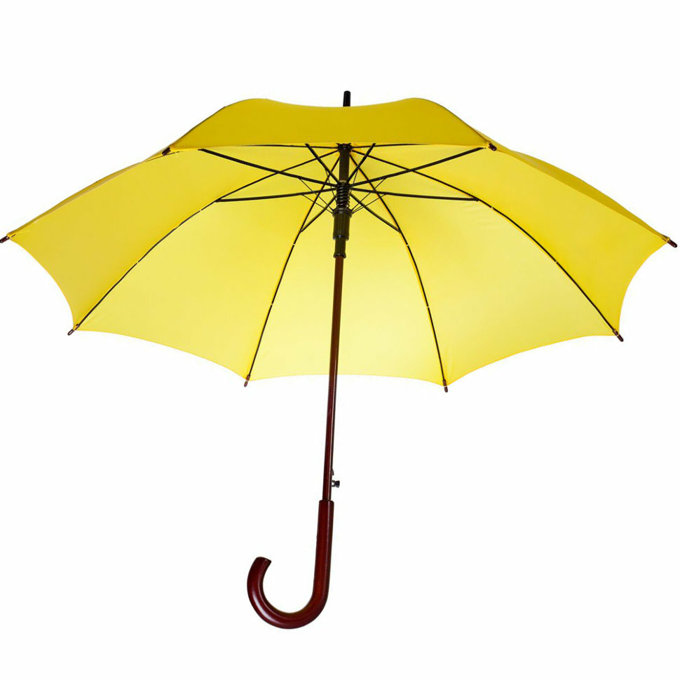 Зонт-трость жёлтого цвета с деревянной ручкой (купол 100 см)