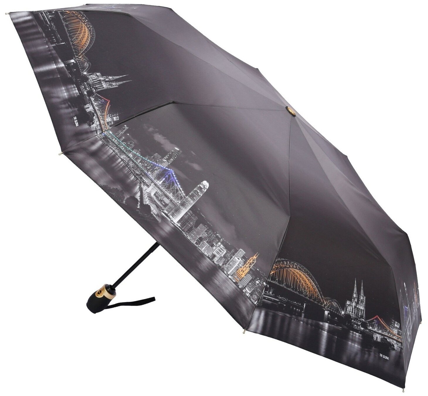 Зонт женский ТРИ слона, 3 сложения автомат 3833-B-02, черный интересное: