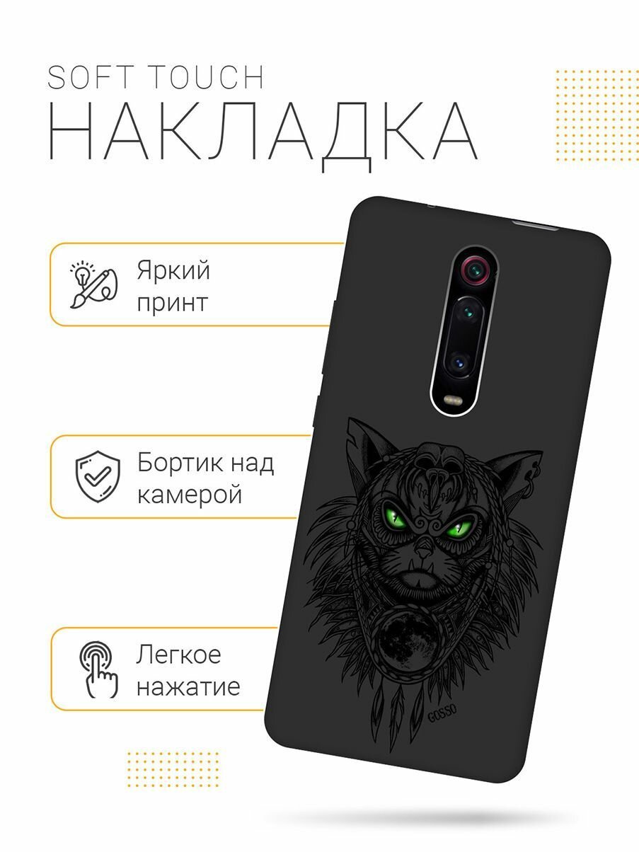 Ультратонкая защитная накладка Soft Touch для Xiaomi Mi 9T / Mi 9T Pro / K20 / K20 Pro с принтом "Shaman Cat" черная интересное: