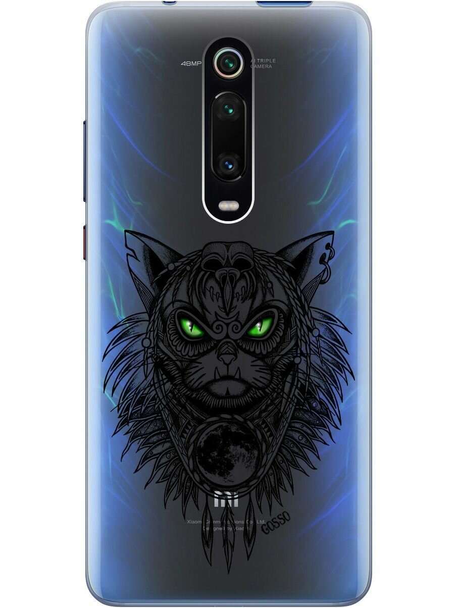 Купить Ультратонкий силиконовый чехол-накладка Transparent для Xiaomi Mi 9T / Mi 9T Pro / K20 / K20 Pro с 3D принтом "Shaman Cat"