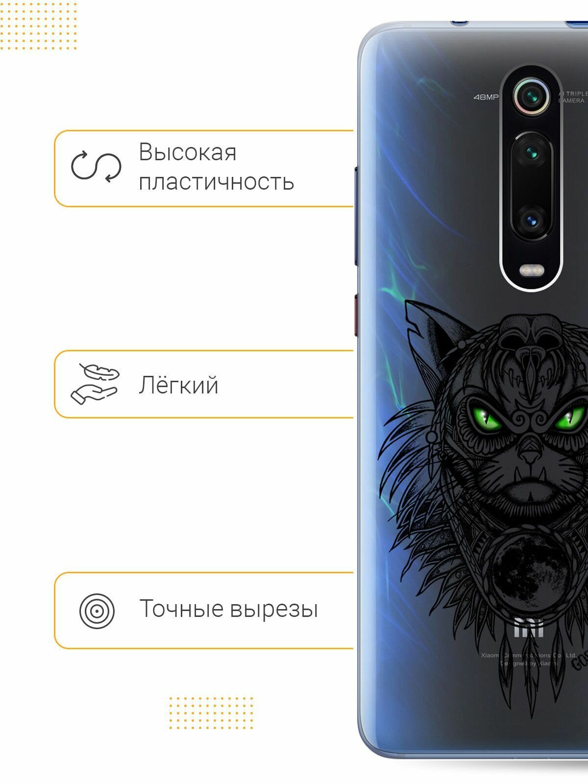Ультратонкий силиконовый чехол-накладка Transparent для Xiaomi Mi 9T / Mi 9T Pro / K20 / K20 Pro с 3D принтом "Shaman Cat" интересное: