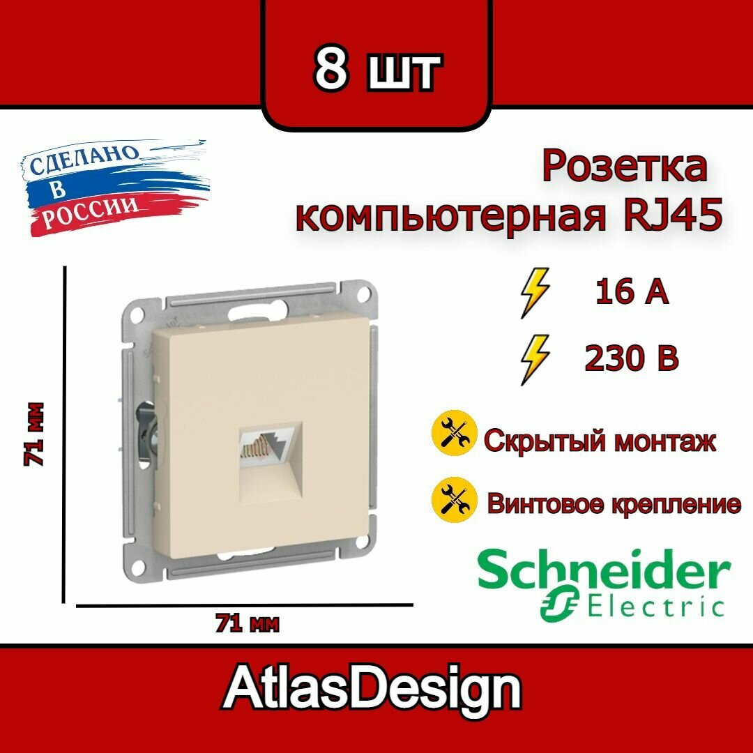 Розетка компьютерная RJ45, 6А, бежевая, Schneider Electric AtlasDesign (комплект 8шт)