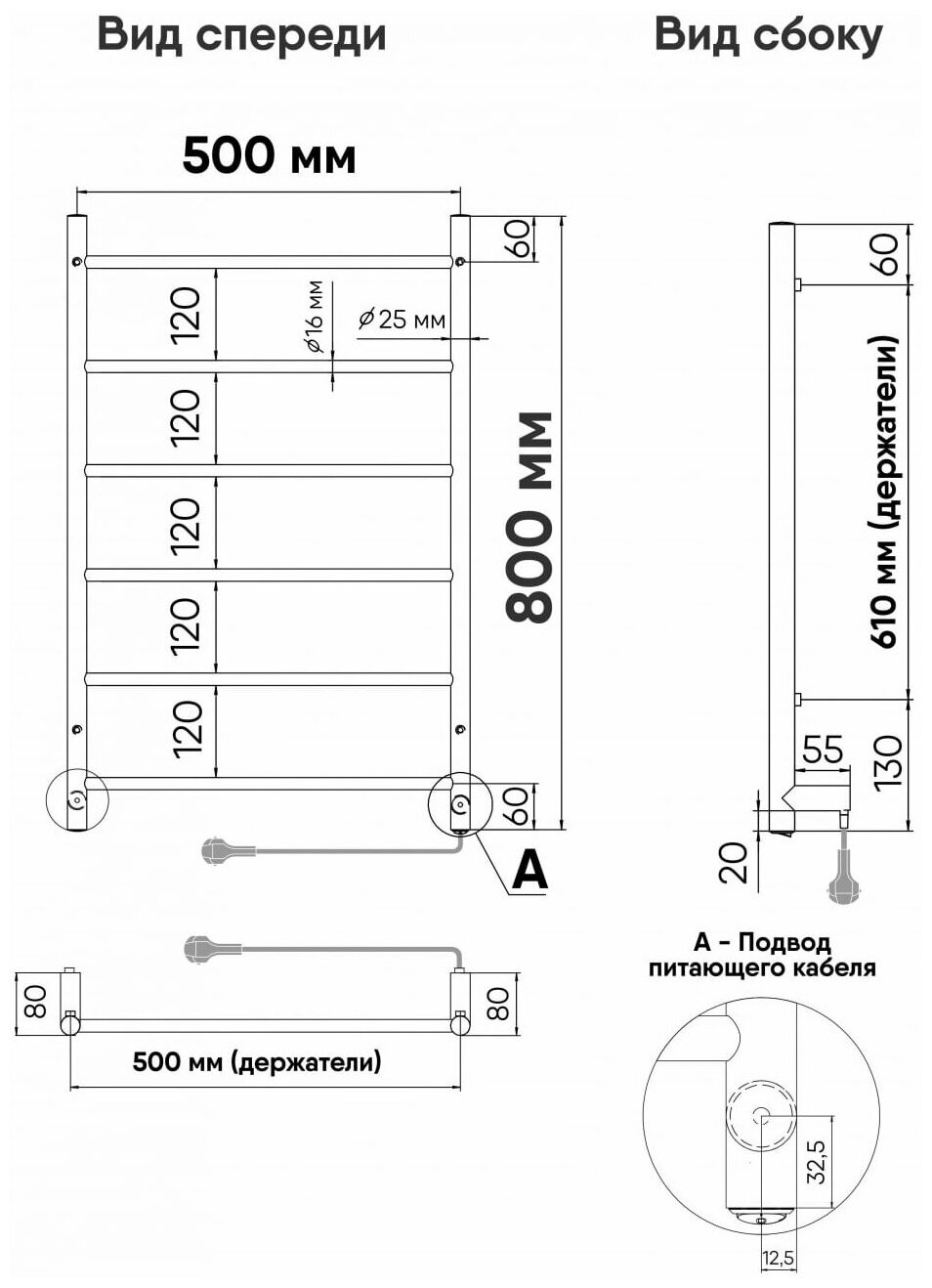 Полотенцесушитель Электрический Тругор Пэк сп 5 П 60х50 черный ВГП