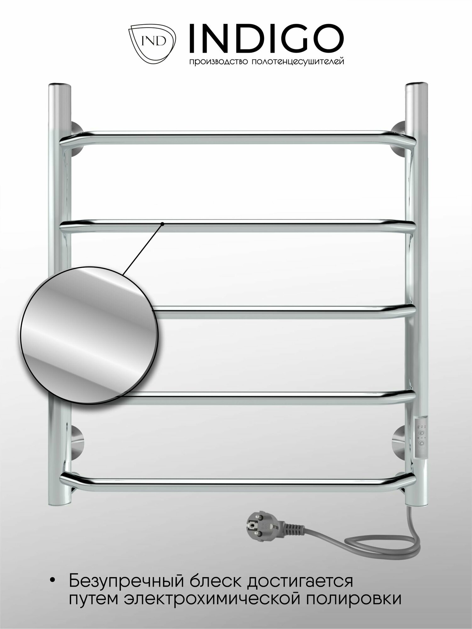 Indigo Электрический полотенцесушитель INDIGO LCRLE60-50Rt Roof Lux б/п (electro) 60/50 (скр. монтаж, полированная), серебристый
