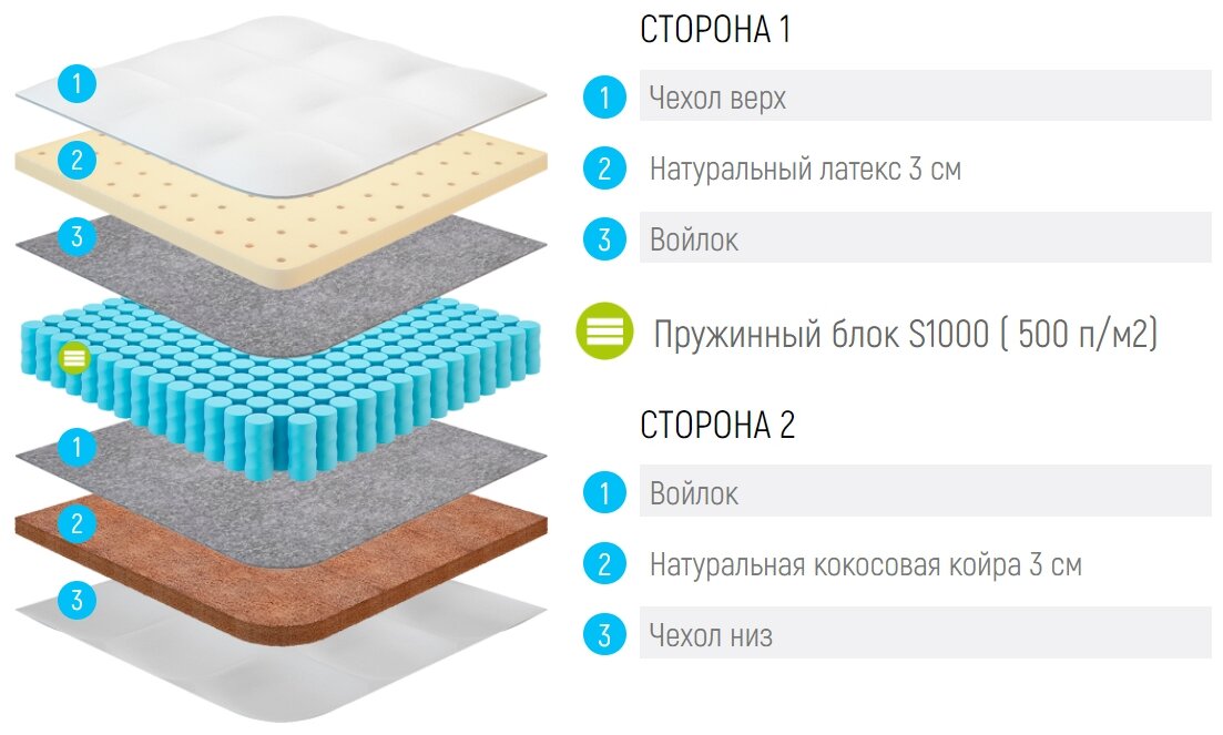 Пружинный матрас Latex-Cocos S1000, 80х195 (Lonax)