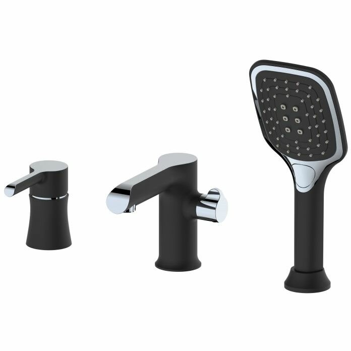 Смеситель для акриловой ванны на три отверстия черный/хром