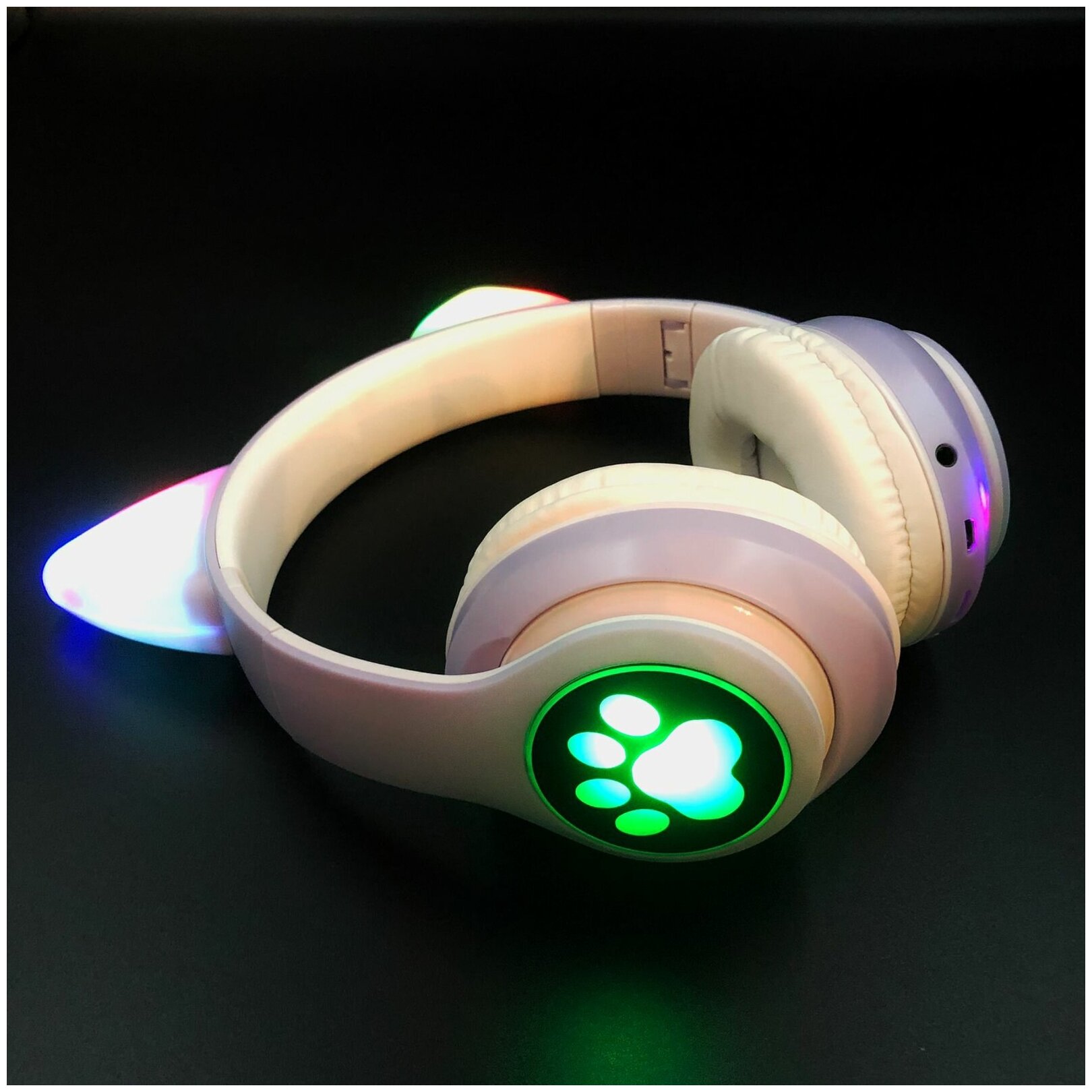 Беспроводные наушники Bluetooth со светящимися кошачьими ушами STN-28 / фиолетовые